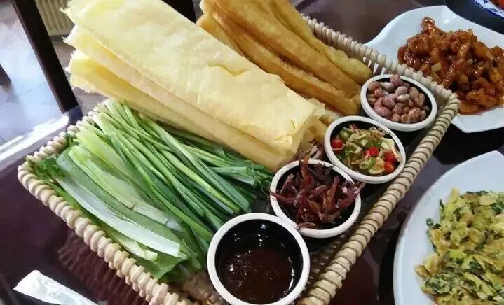 临沂煎饼卷大葱,煎饼的柔韧与葱白的鲜脆在口中交织,最简单的搭配,却迸发出最直接的能量。
