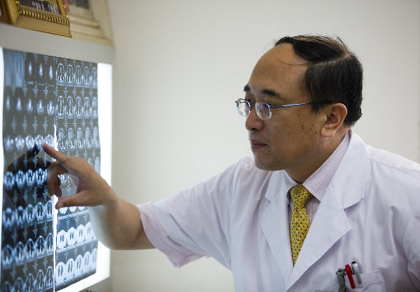 于金明带领他的团队成员们,采用“X刀”疗法——这是精确放疗的一种方法。先将患者推进CT机里,固定头套,扫描病灶,而后传入计算机进行优化设计,再进入加速器照射。从下午到深夜,整整忙碌了六七个小时,仅实施了一次精确放疗,就将肿瘤缩小,再照射几次竟基本消除了。