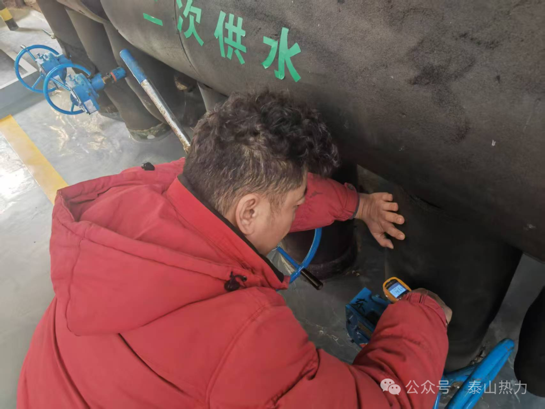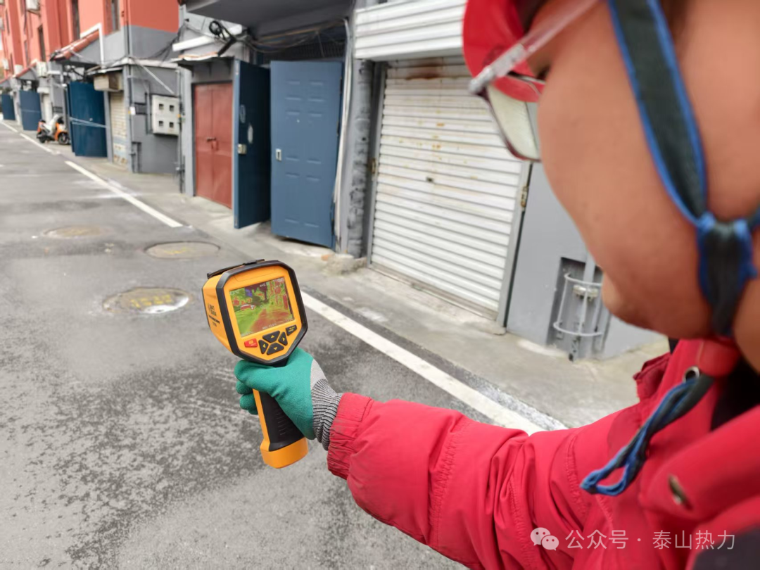 面对突如其来的降雪,泰山城区热力有限公司第一时间增加巡查频率,组织专业巡检队伍对供热管网、换热站等关键设施进行全面排查。巡检人员不畏严寒,顶风冒雪,穿梭在城市的大街小巷,采用“一看、二扫、三检测”的方法,对重点管线进行细致排查。一旦发现地表有融雪、冒热气或井返热气等现象,立即利用听筒、热成像仪、无人机等先进工具确定漏点,并迅速组织抢修,确保供热安全无虞。