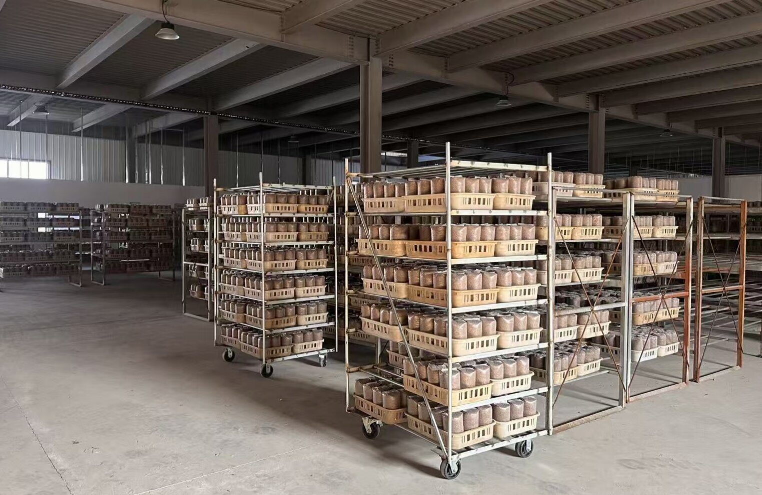 目前,该项目已经建成一条菌棒生产线,深加工车间正在建设中,投产后将主打休闲零食和酱制品,预计年产能约1200吨。同时,三层电商直播基地也正在加紧建设,后续将深化产业链建设,推动三产融合,构建食用菌全产业链发展体系。