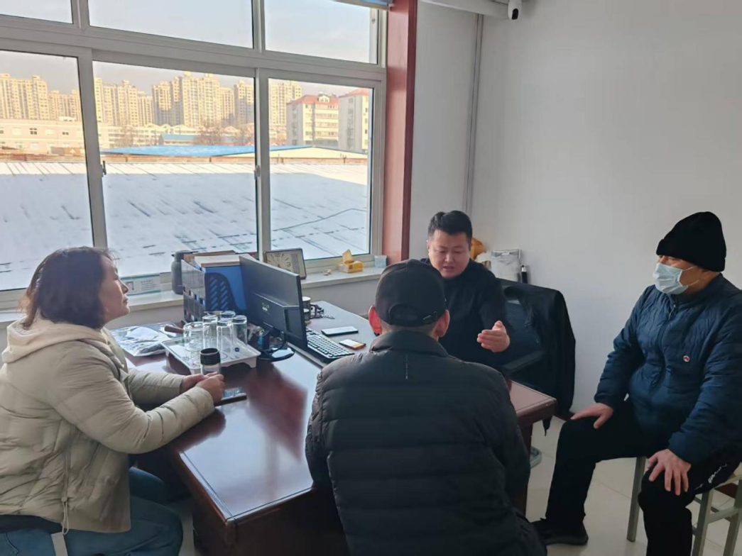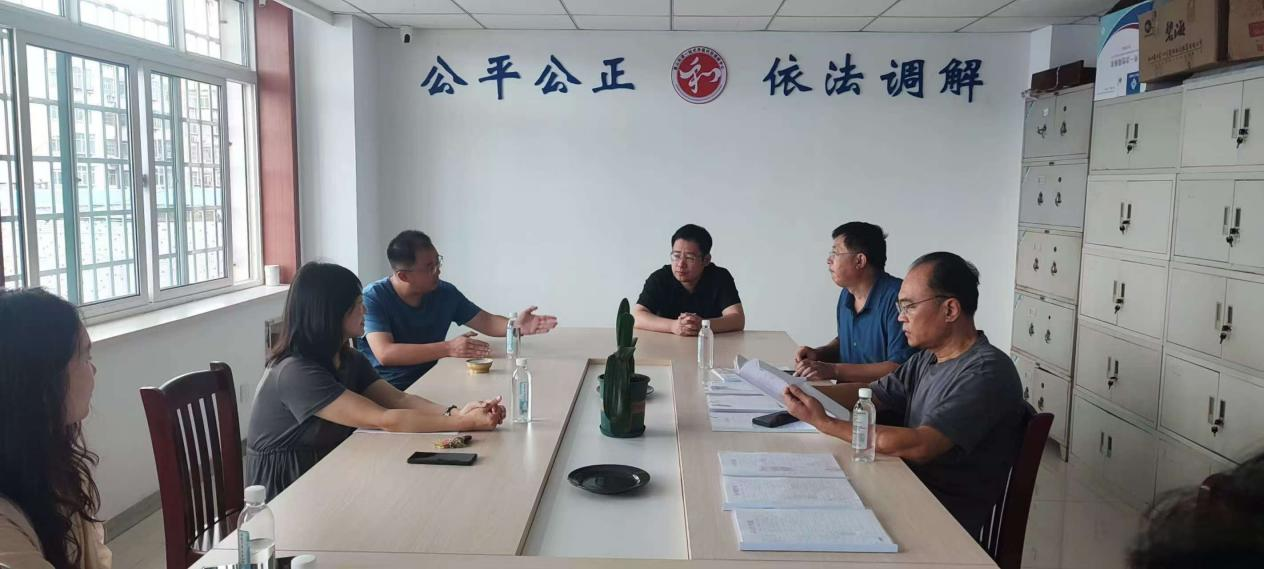 招远泉山街道调解委员会联合市委政法委、市法院相关人员多部门联动研究疑难复杂调解案件。烟台市司法局供图
