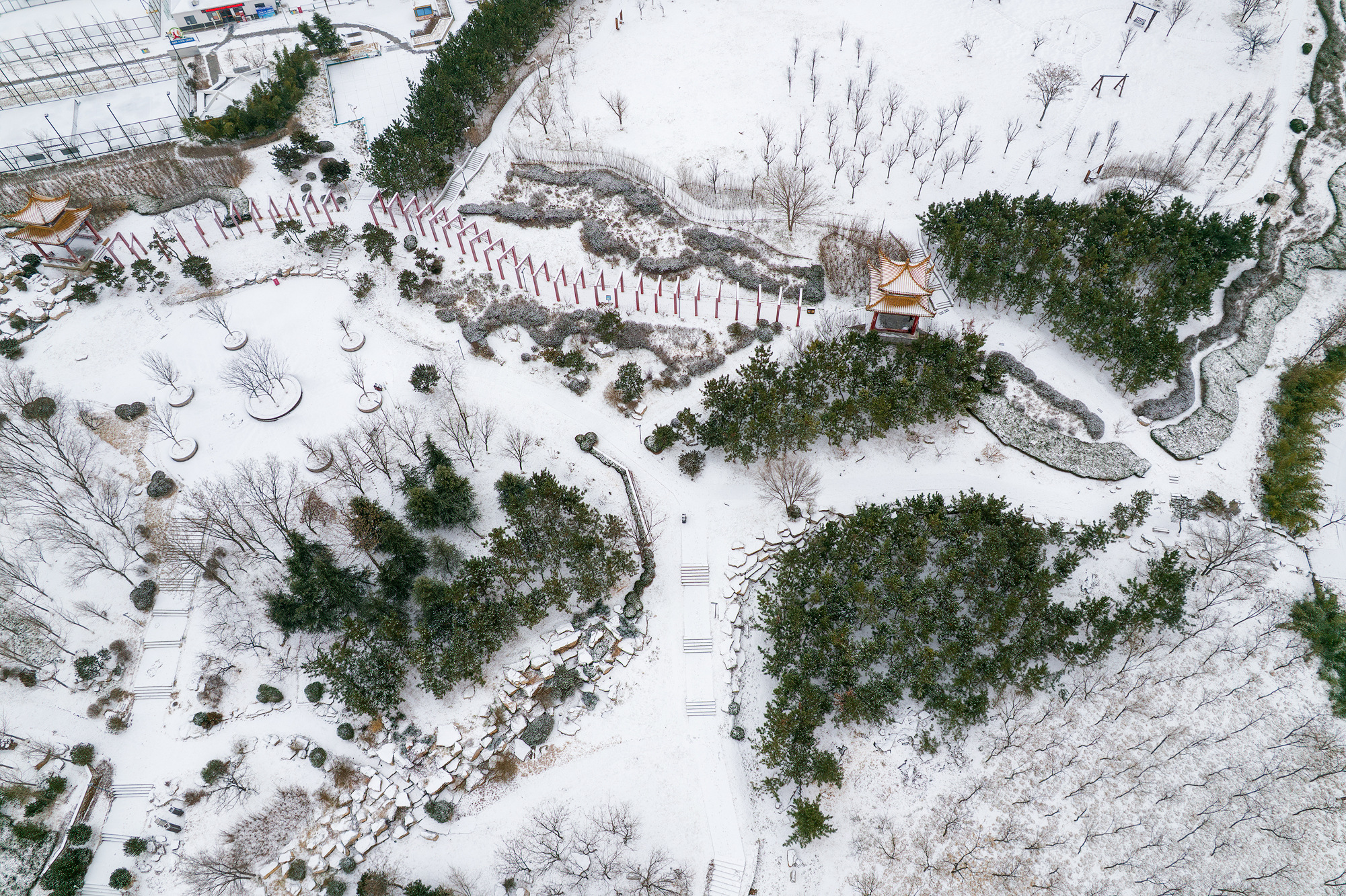 瑞雪落钢城,山川草木皆已入画。2026年1月19日雪后的大汶河公园。(山东钢铁股份有限公司纪涛拍摄)