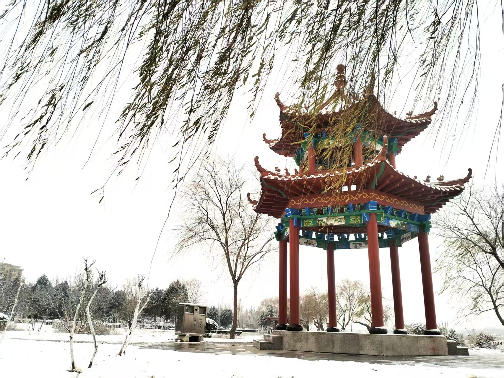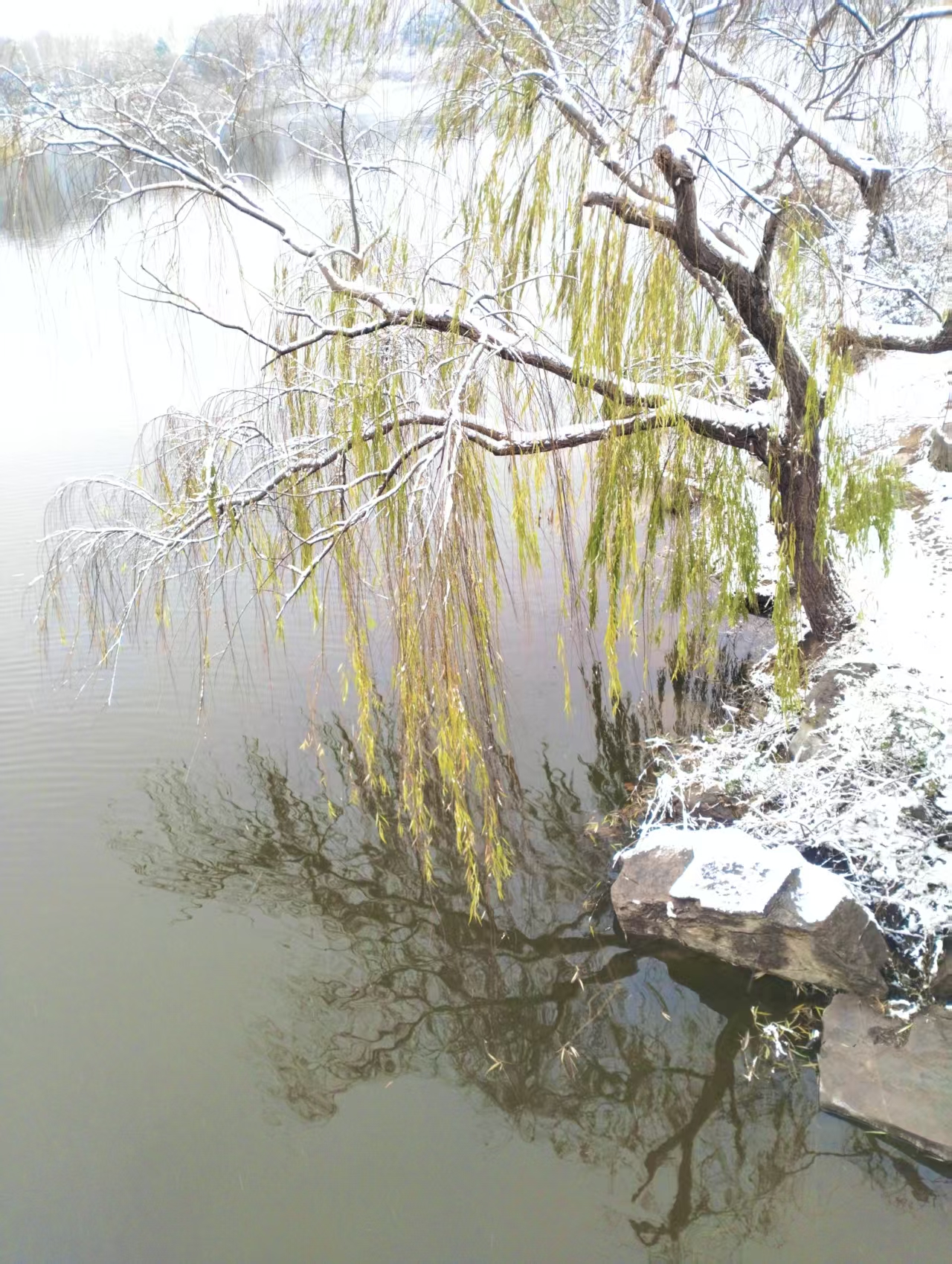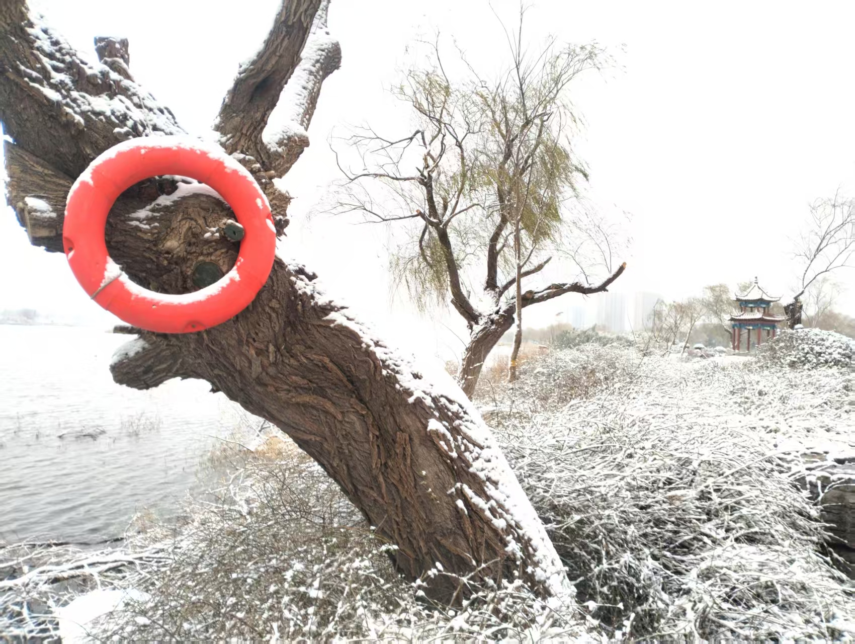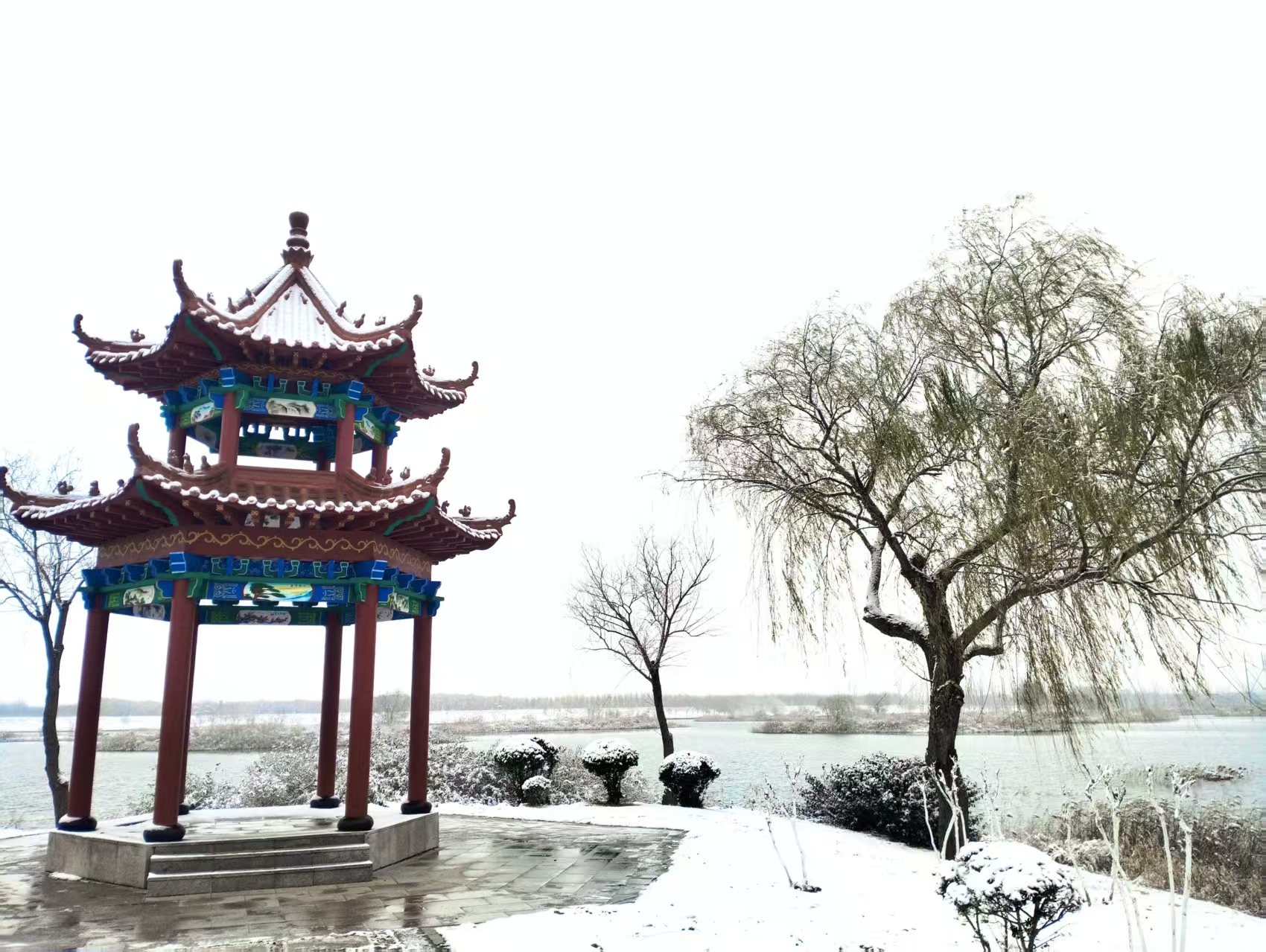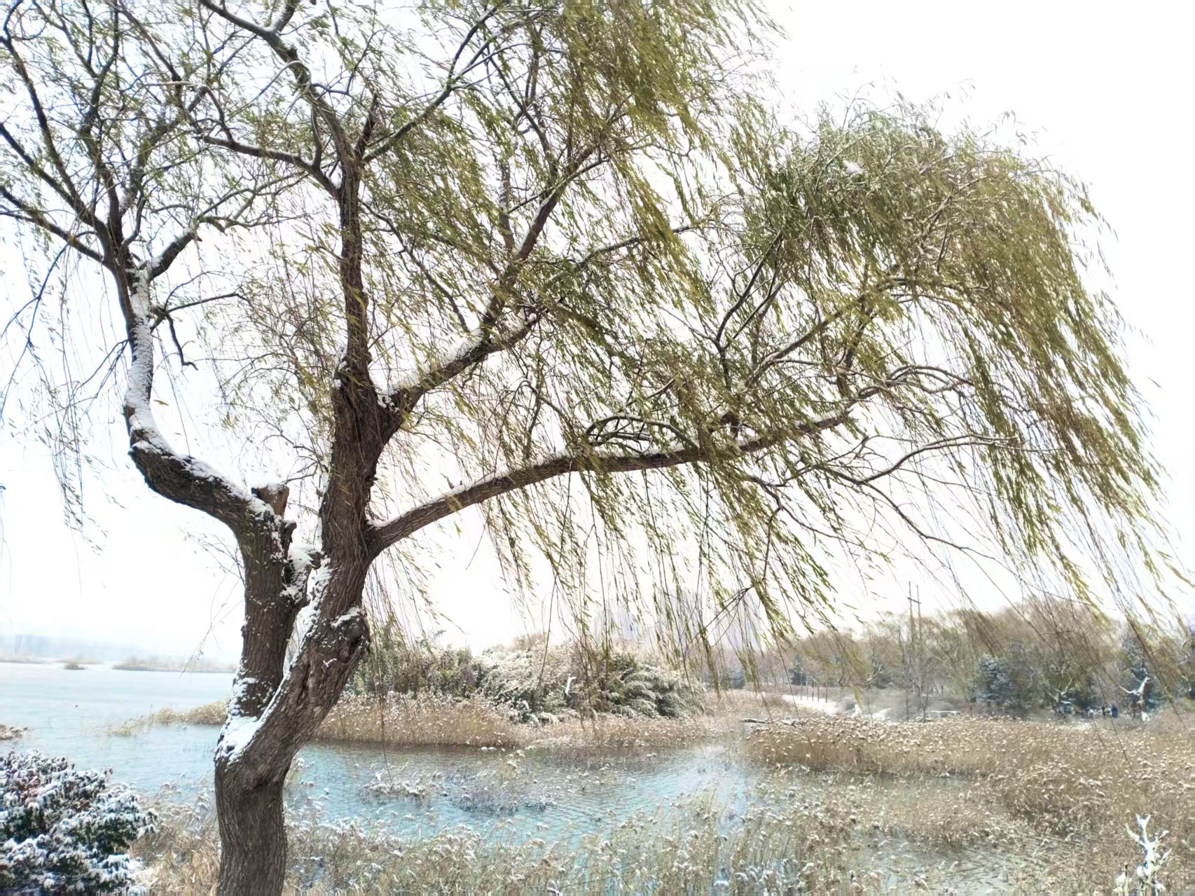 2026年的第一场雪姗姗来迟,雪落安丘汶河国家级城市湿地公园,清寒中带着雅意,祥瑞中携手满满的人间烟火气。(安丘市嘉瑞机械有限公司徐培学拍摄)