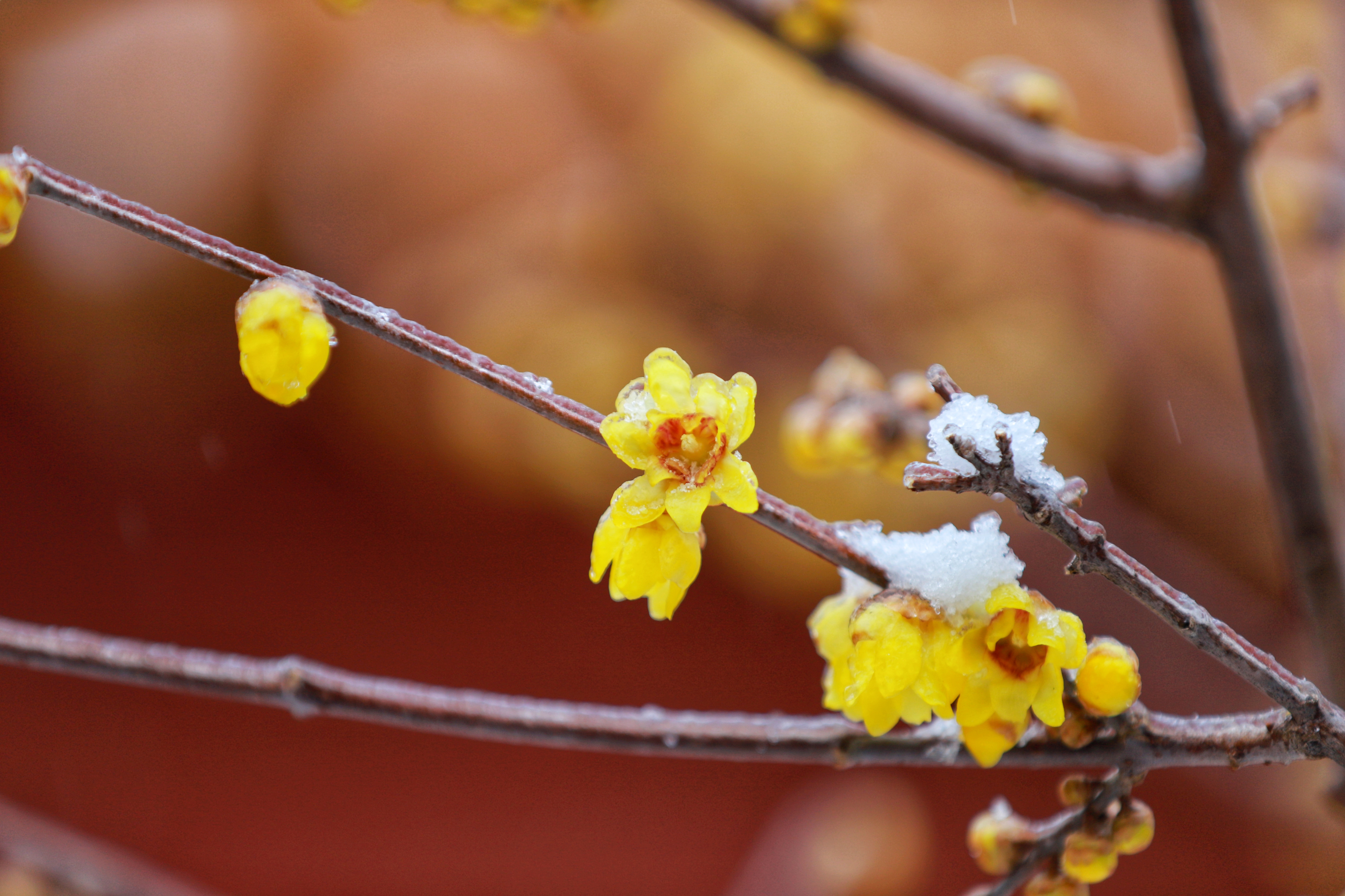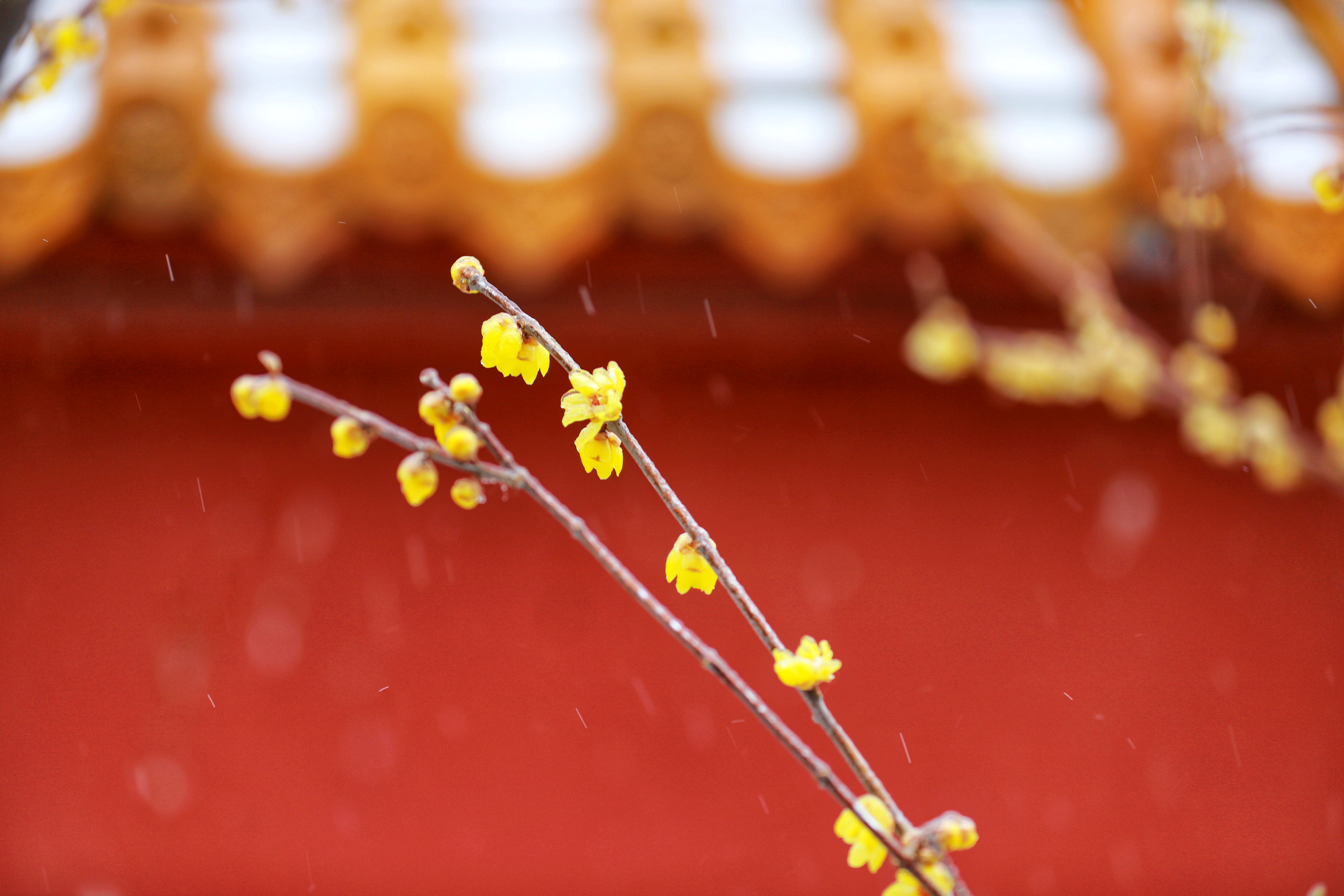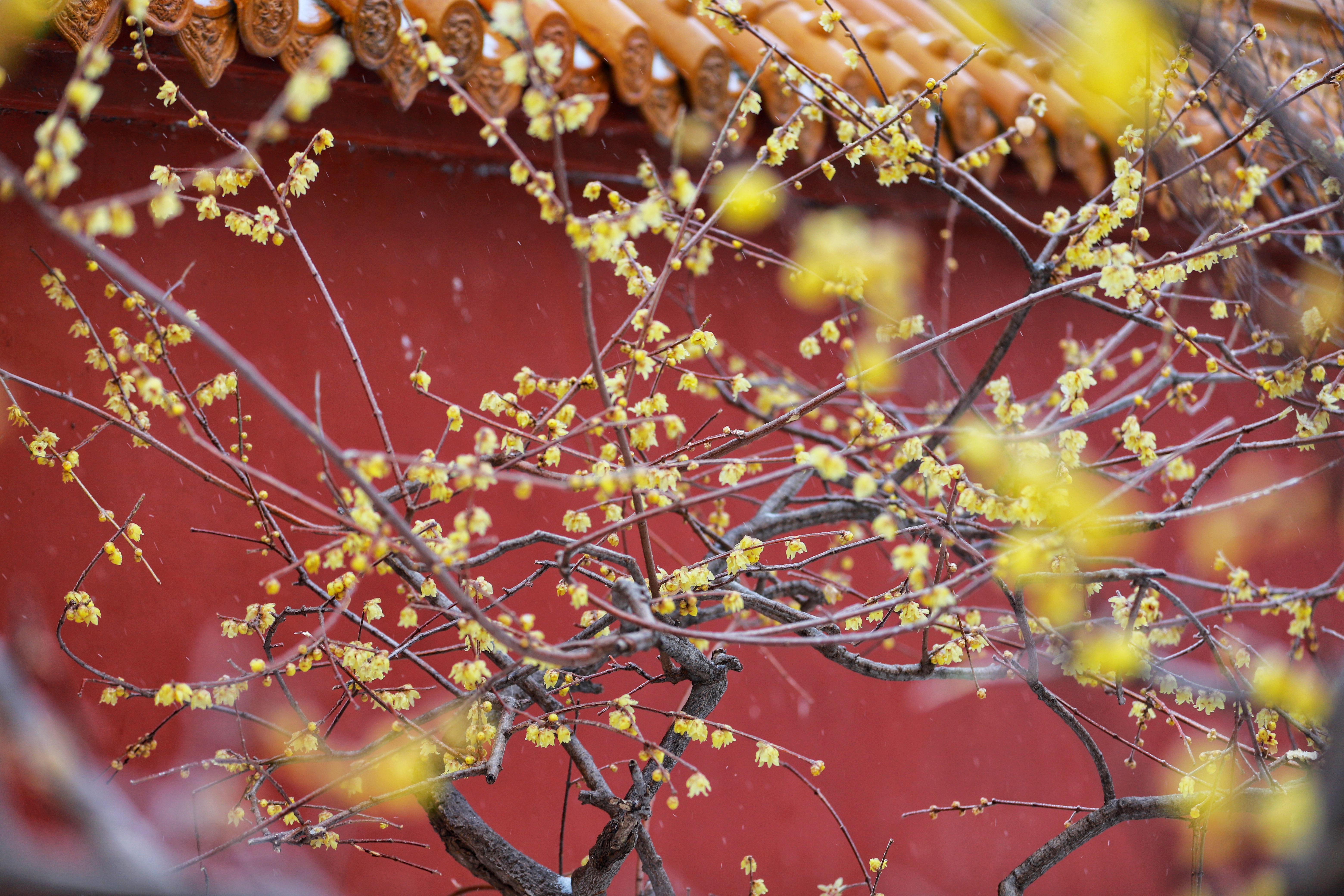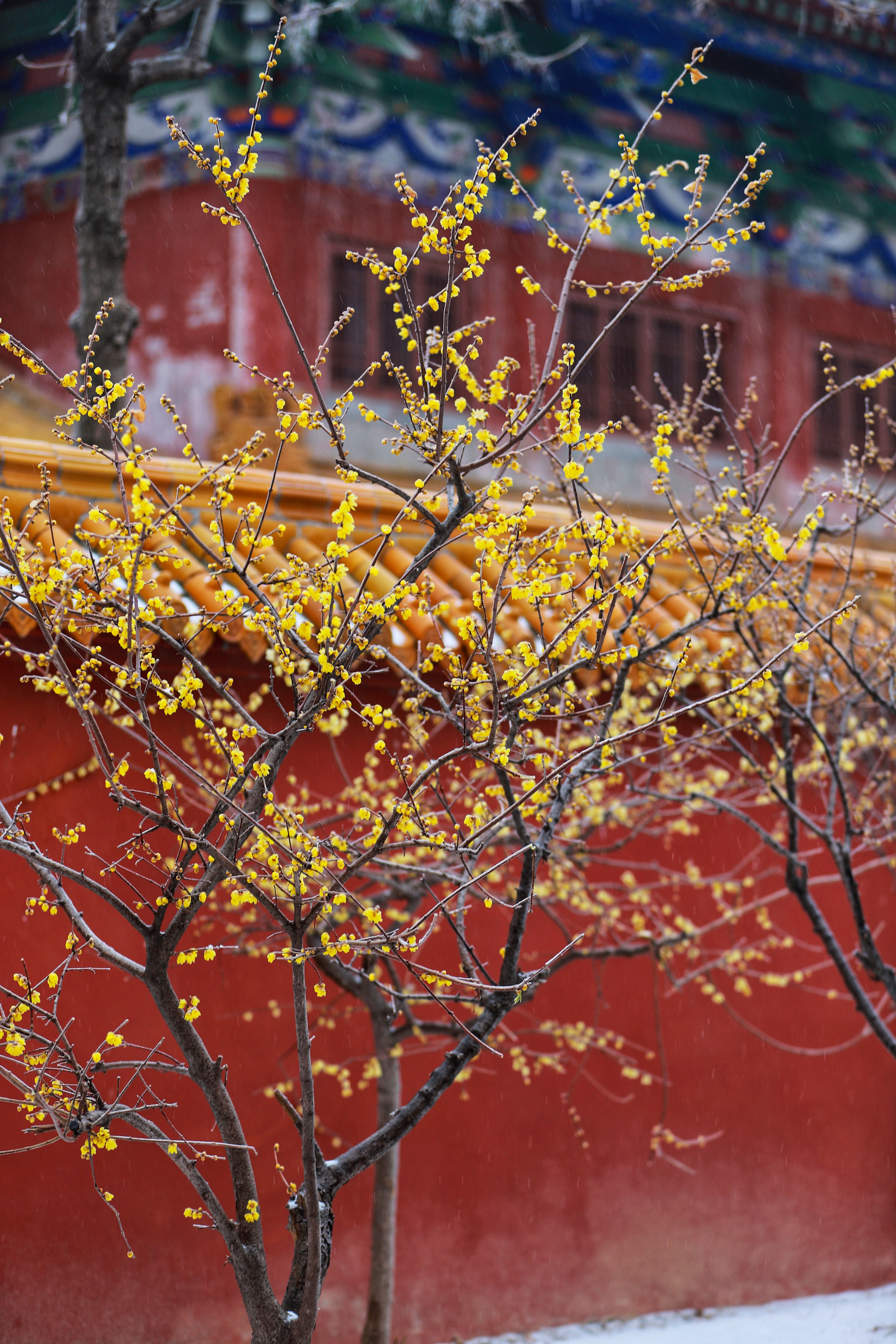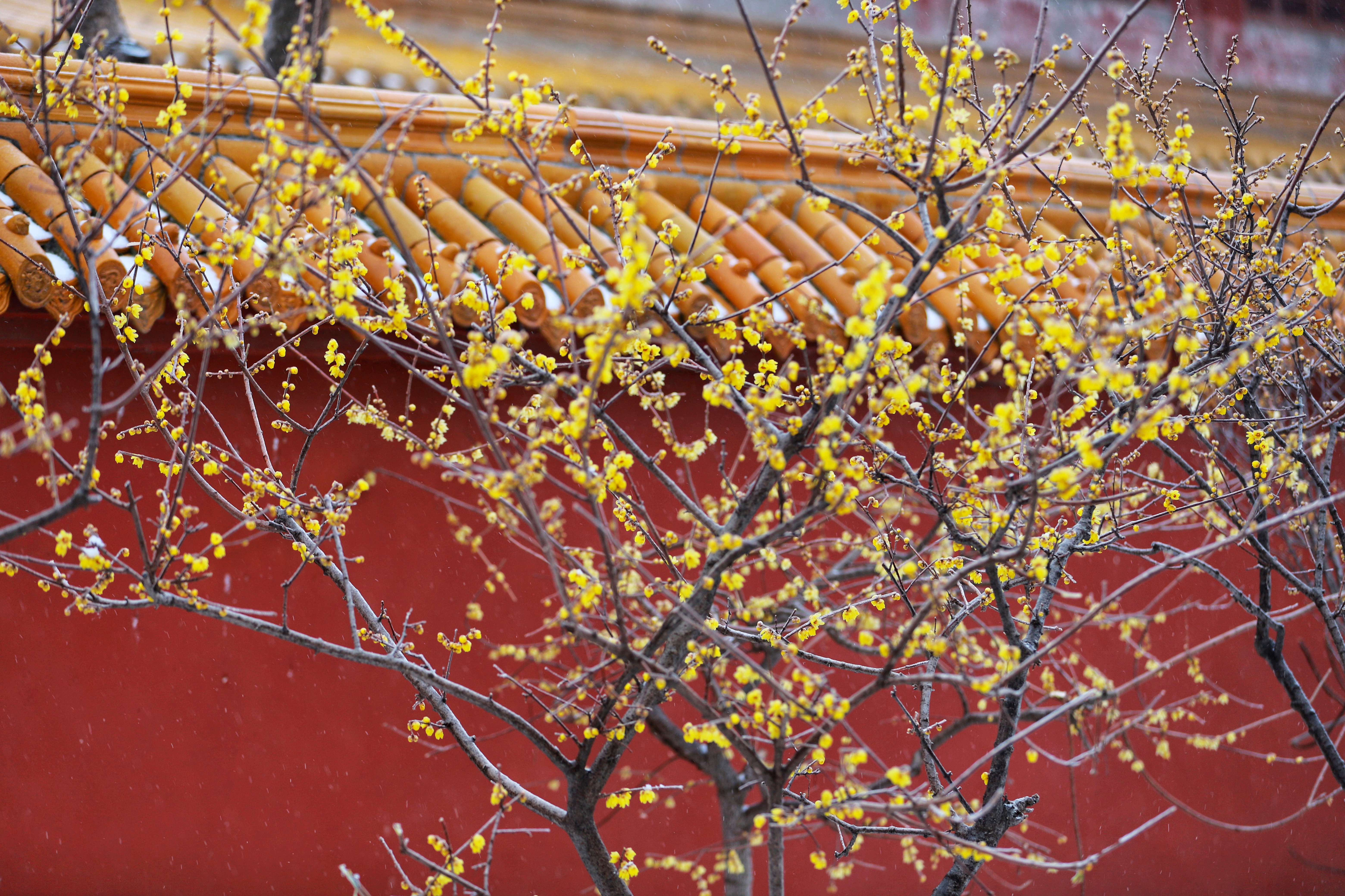 冬日,青州龙兴寺腊梅在雪中绽放。(山东省青州第二中学潘志刚拍摄)
