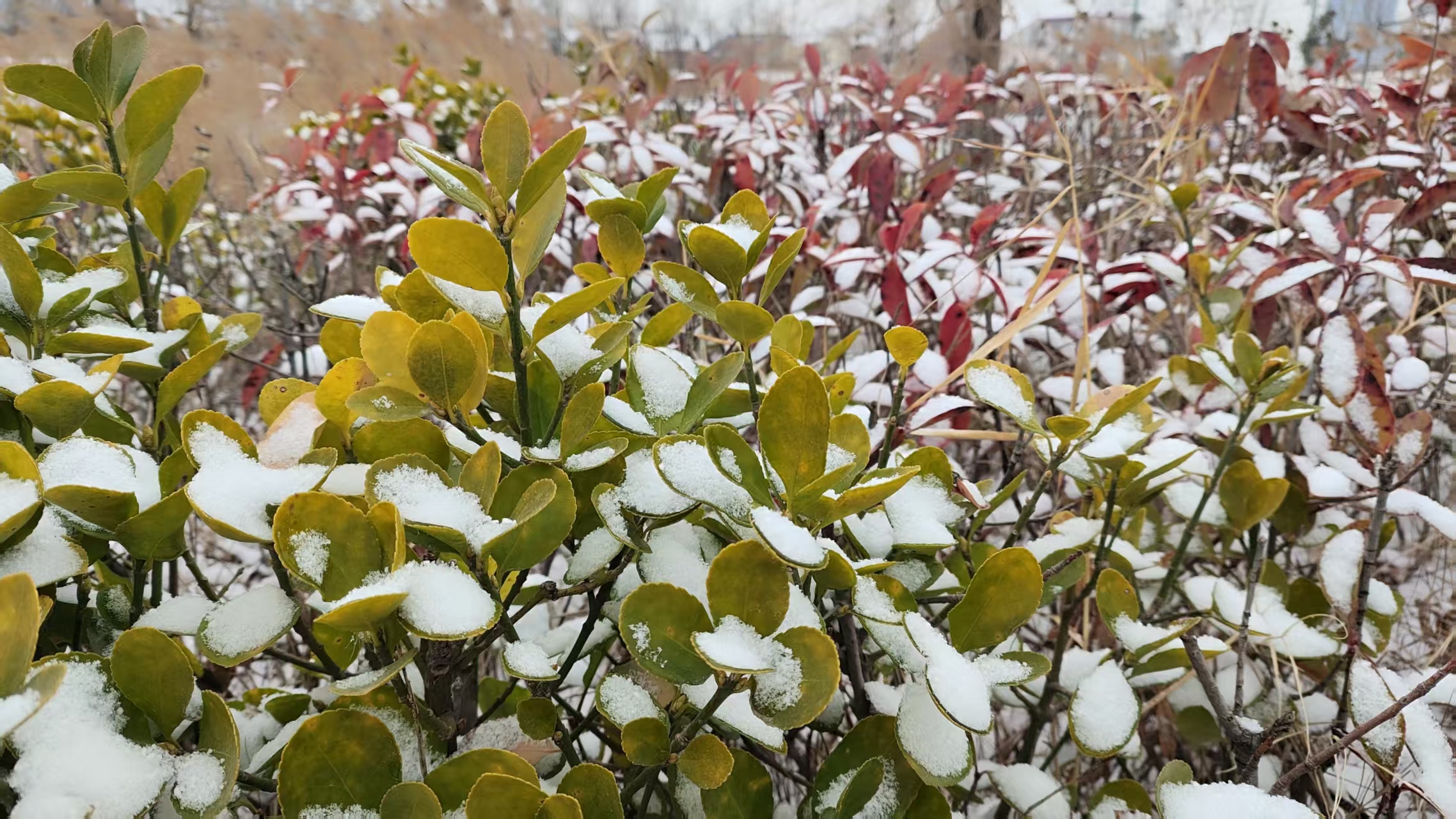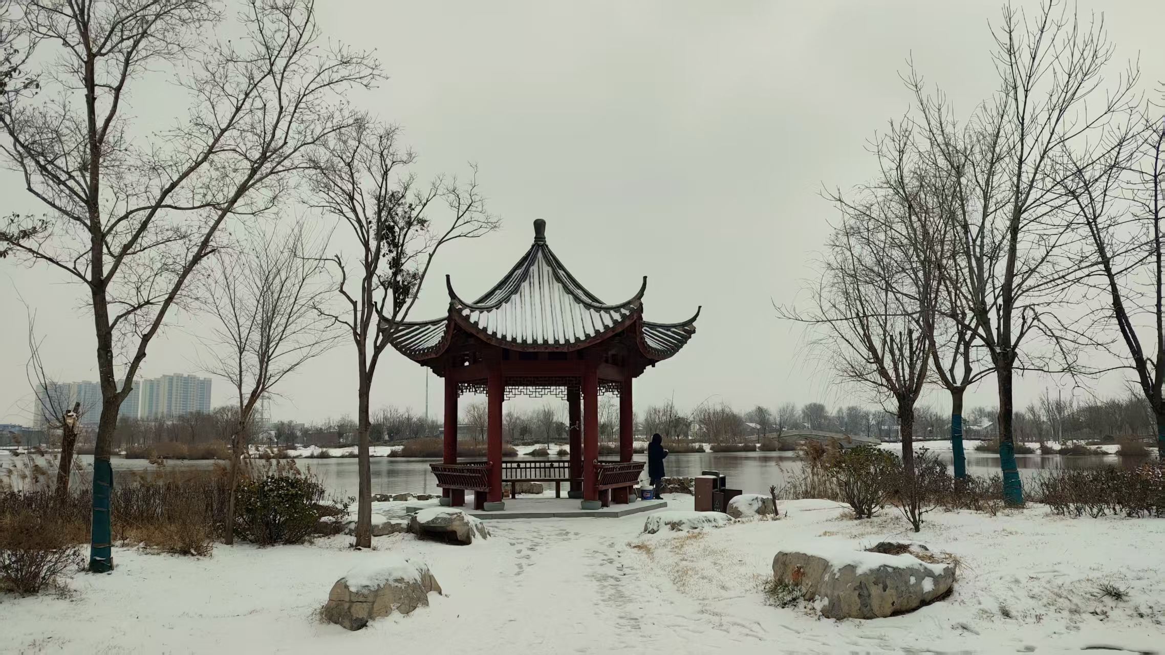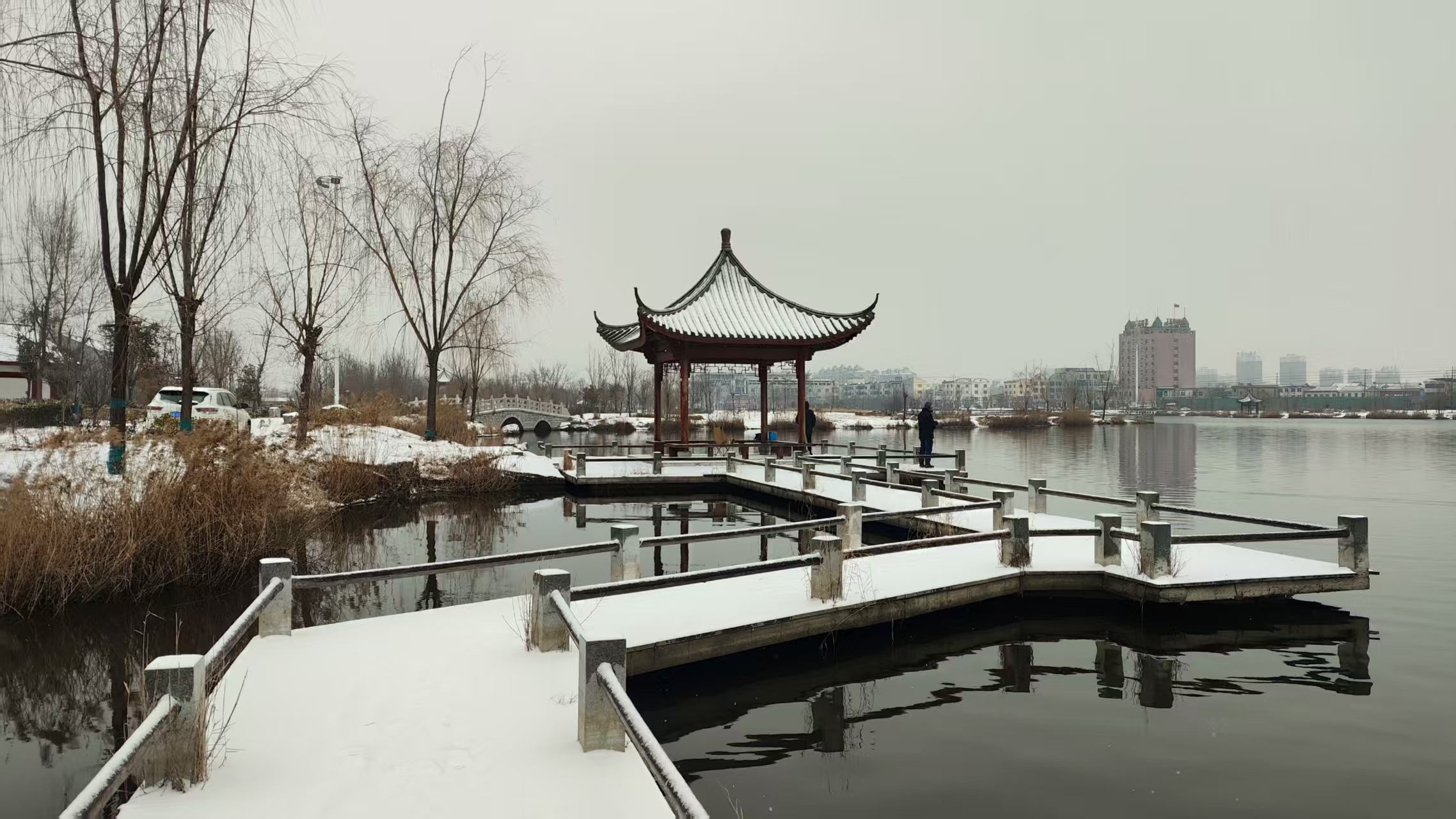 2026年的第一场雪落在曹县南湖公园,为冬日增添几分诗情画意。(曹县融媒体中心丁有策拍摄)