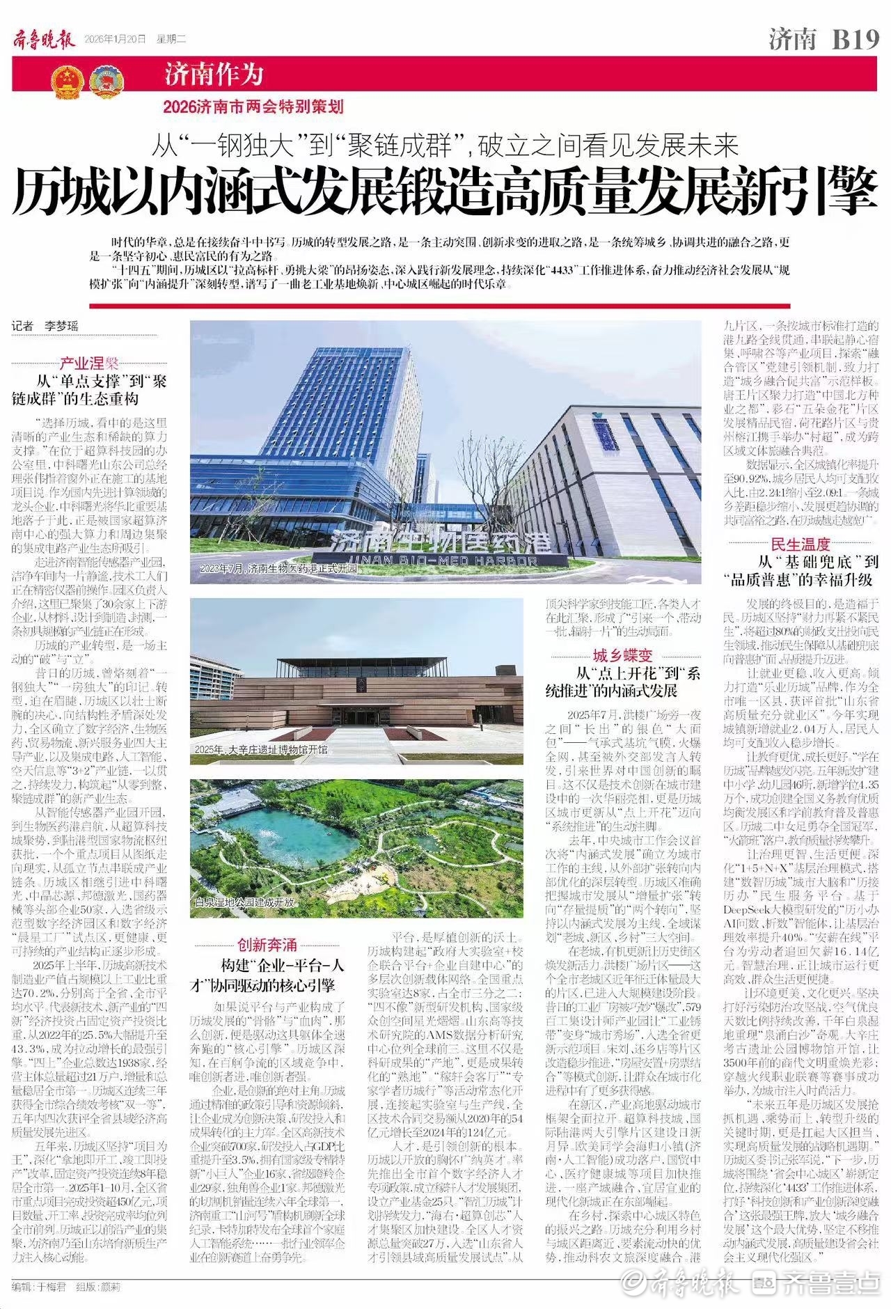 从智能传感器产业园开园,到生物医药港启航,从超算科技城聚势,到陆港型国家物流枢纽获批,一个个重点项目从图纸走向现实,从孤立节点串联成产业链条。历城区相继引进中科曙光、中晶芯源、邦德激光、国药器械等头部企业50家,入选省级示范型数字经济园区和数字经济“晨星工厂”试点区,更健康、更可持续的产业结构正逐步形成。