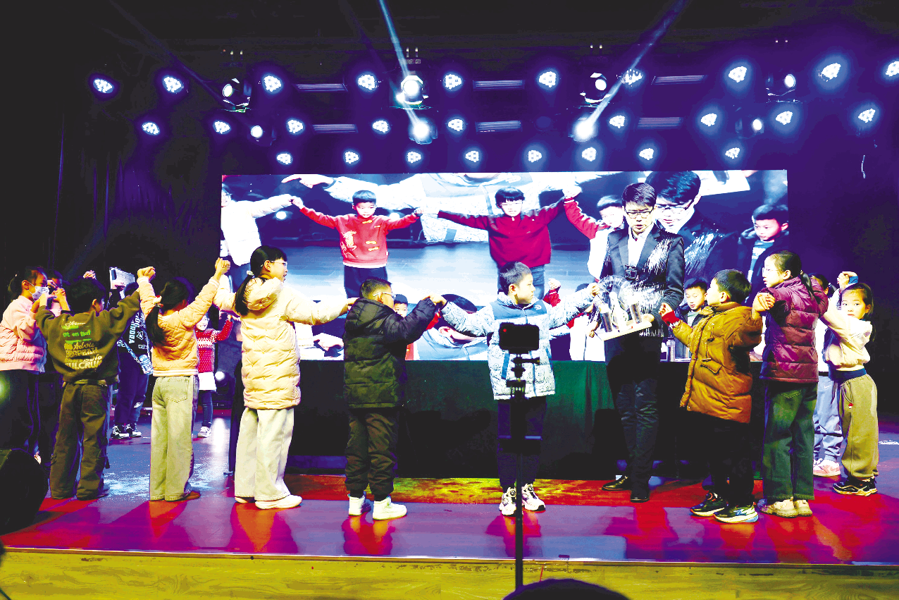 最让孩子们着迷的,是这场浪漫的“雪花梦”。杨智明双手合拢轻搓,一朵朵洁白的“雪花”便从他掌心悠悠扬起,在台前轻轻飘绕,落于肩头、悬在半空。孩子们仰着小脸满眼雀跃,目光紧紧追着飘飞的“雪花”,不少孩子也学着他的样子攥起小手轻搓,眼里满是期待。家长们纷纷拿起手机,对着台上不停拍摄,用镜头定格这融融暖意的亲子时光。