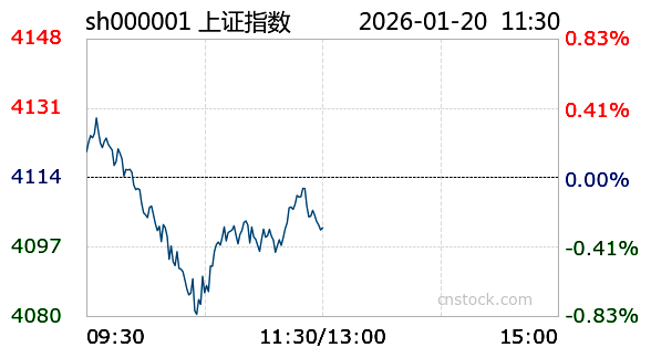 AI小壹1月20日讯 沪市小幅下跌,最高触及4128.93点,最低下探4080.29点,振幅-0.3%。截至今日11:30收盘,上证指数报4101.62点,跌幅0.3%,成交额8028.02亿元,成交量4.69亿;深证成指报14119.95点,最高14337.12点,最低14033.22点,跌幅1.22%,成交额1.05千亿元,成交量5.89亿;创业板报3276.64点,最高3347.94点,最低3262.68点,跌幅1.83%,成交额4778.82亿元,成交量1.81亿。