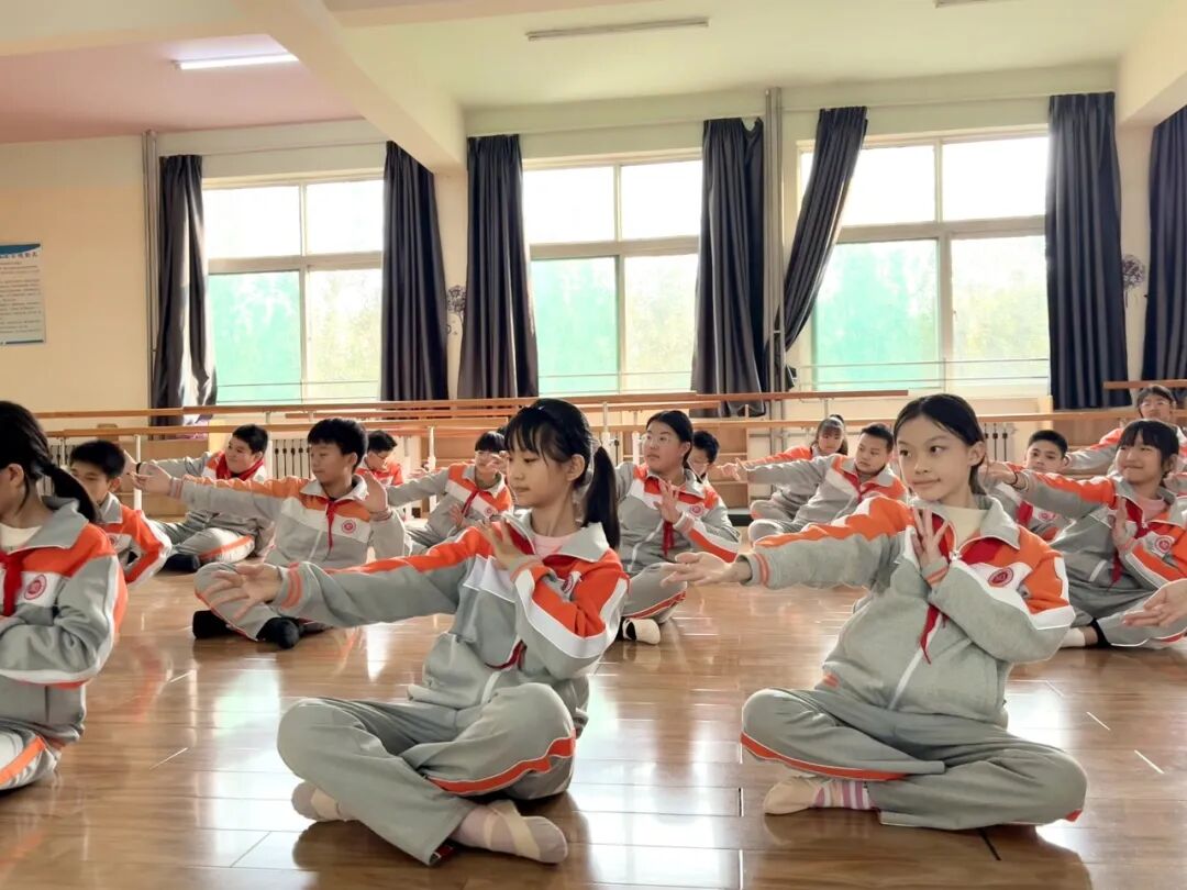 温柔的暖阳洒在舞蹈教室的木地板上,孩子们端正地席地而坐,小脊背挺得笔直。