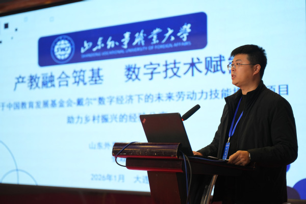 在大会经验交流环节,山东外事职业大学围绕“产教融合驱动数字技能培养”“真实项目赋能学生成长”“数字技术服务乡村振兴”等方面的探索与实践作了系统介绍,获得与会专家和兄弟院校的广泛关注与积极评价。