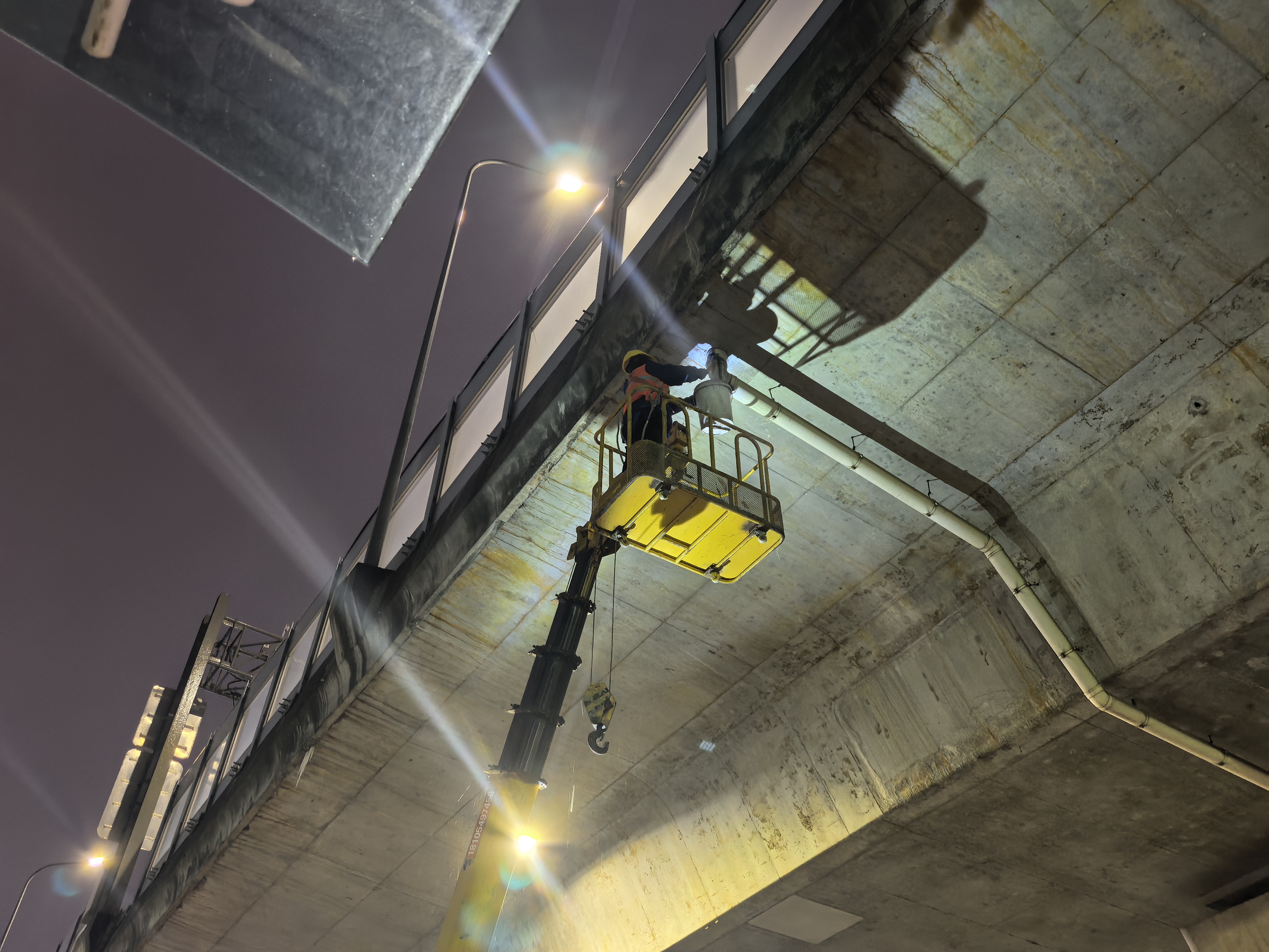 为应对冰凌隐患,中心立即启动应急预案,采取“机械+人工”“巡查+清理”相结合的方式,对沂河路高架、蒙山路高架等4条高架路、50余座大型桥梁开展不间断排查,组织人员队伍顶风冒雪,利用高空作业车、长杆等工具及时清除冰凌,并同步疏导桥面排水系统,检查接缝密封,防止次生结冰。作业期间,地面安全人员规范设置警示标识,及时引导交通,形成“空中清险、地面护安”的协同防护体系。