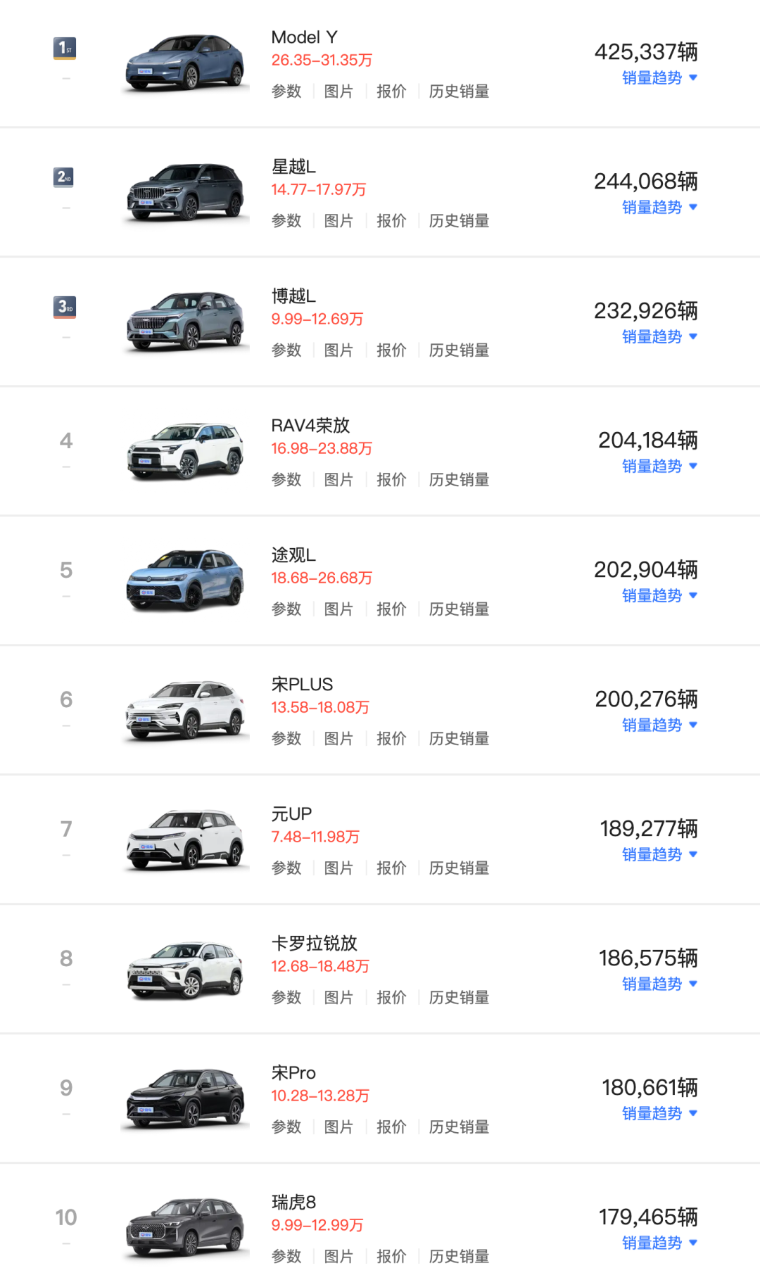 SUV市场Model Y领跑