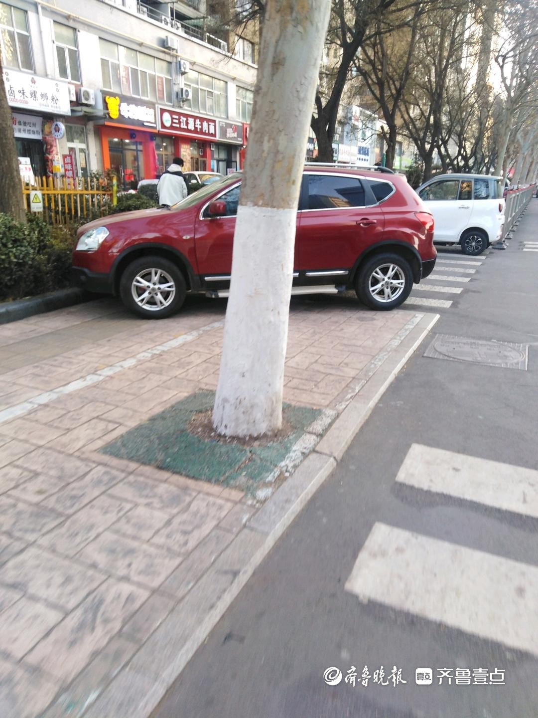 1月20日,情报员“14794833”向齐鲁晚报官方客户端齐鲁壹点情报站发来报料称,在济南市槐荫区经十路德兴街小学门口,人行道上有不少车辆停放在此,而且占用了盲道的位置,给市民通行带来了不便。