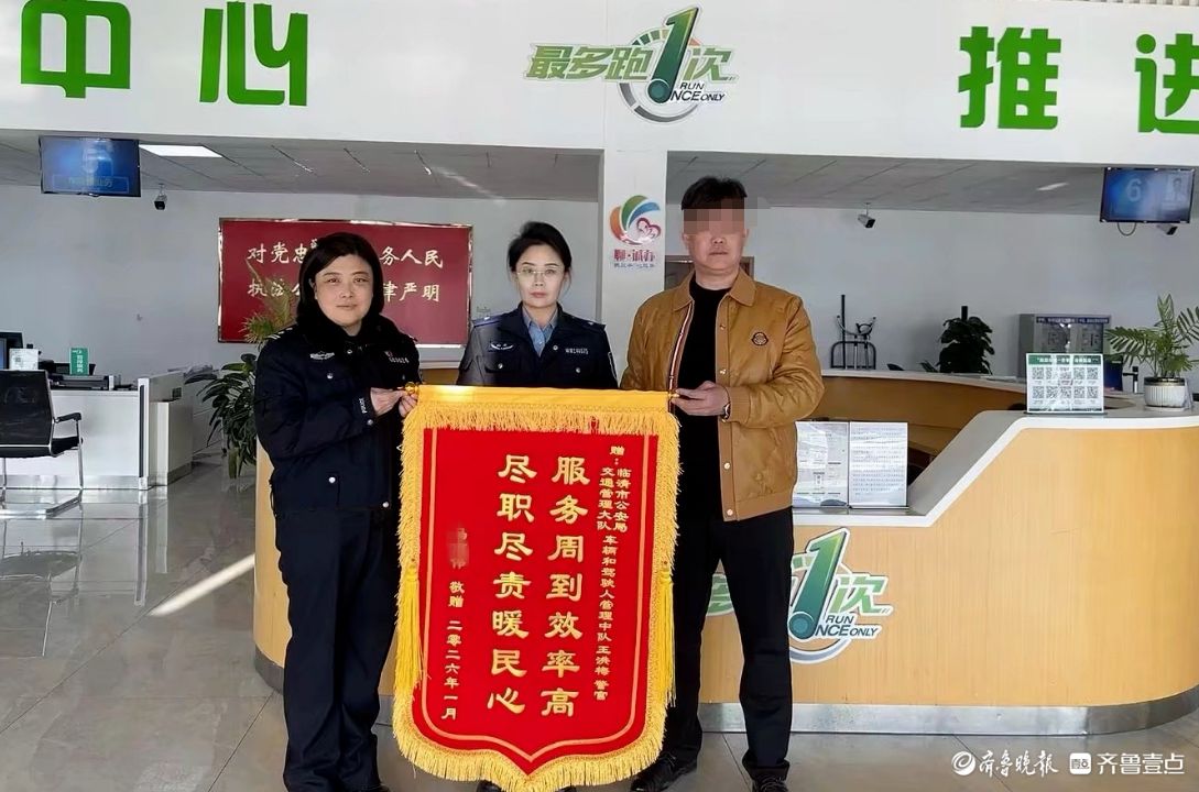 困扰多年的驾证问题解决了,他为临清车驾管民警送上锦旗致谢
