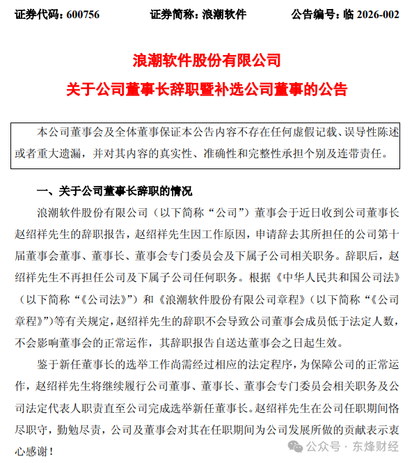 东烽财经|赵绍祥卸任浪潮软件董事长,原定今年5月终止任期