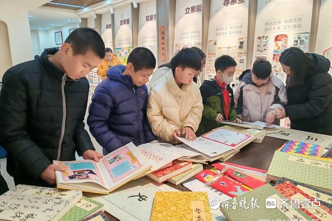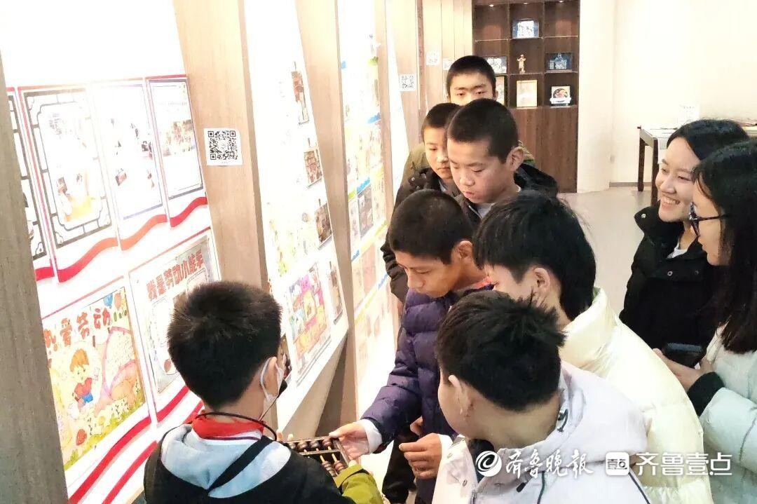 班级孩子化身小小讲解员,带领这群新认识的朋友们参观学校的家风体验馆和美猴王书屋,讲解员放慢脚步、放慢语速,用最耐心的语气介绍着,清脆的讲解声和欢快的笑声在体验馆里久久回荡。