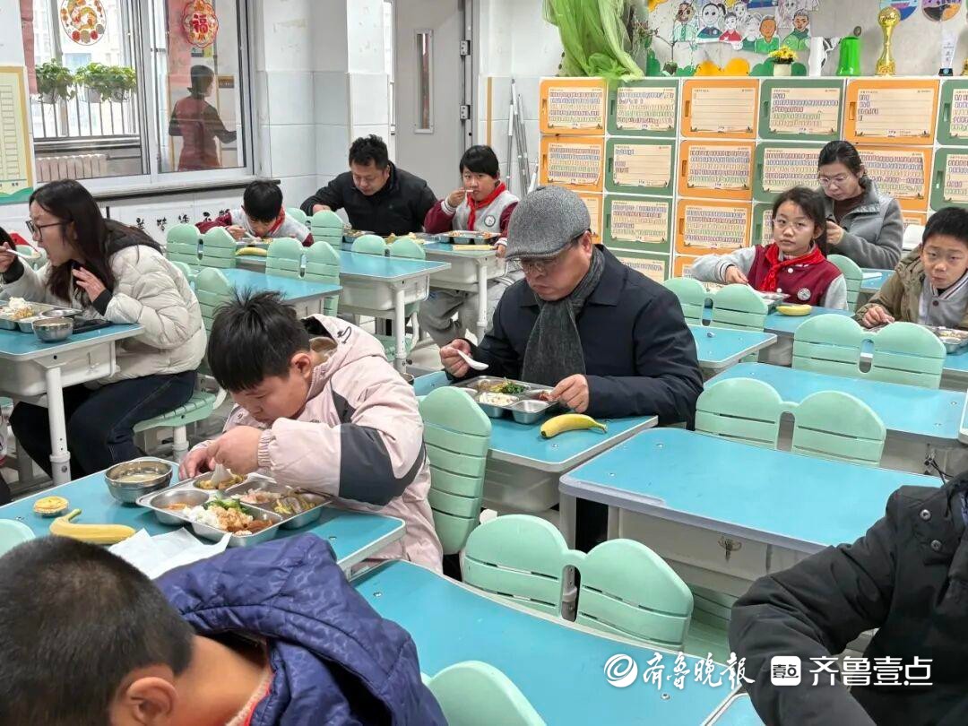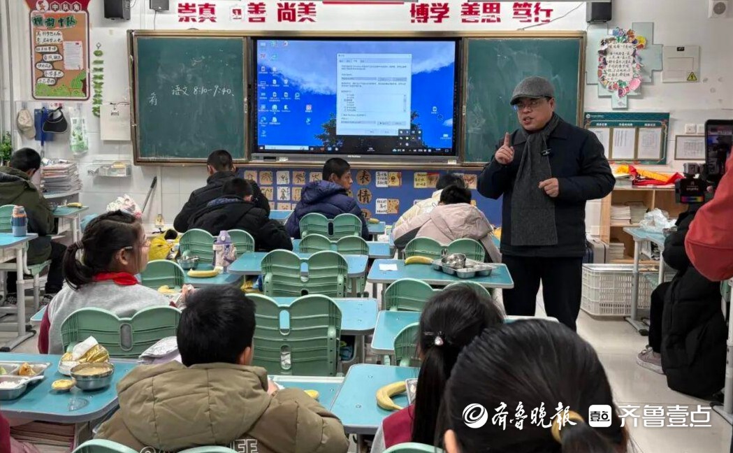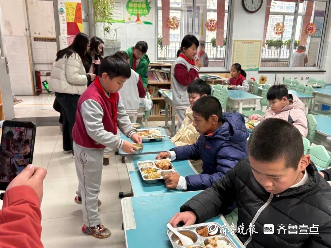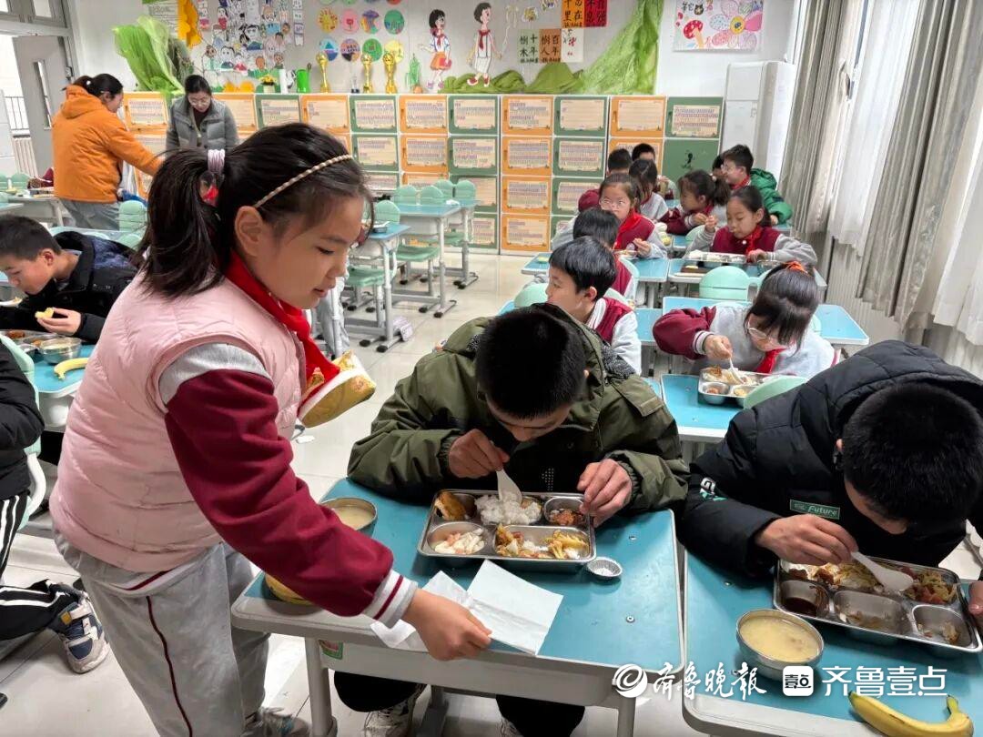 到了午餐时间,班级孩子们热情地给这群新朋友带队,帮助他们盛饭,吕书记和王主任也在旁边关注着孩子们,协调饭菜的多少,确保让每个孩子都能吃饱。