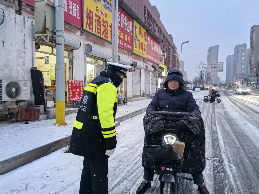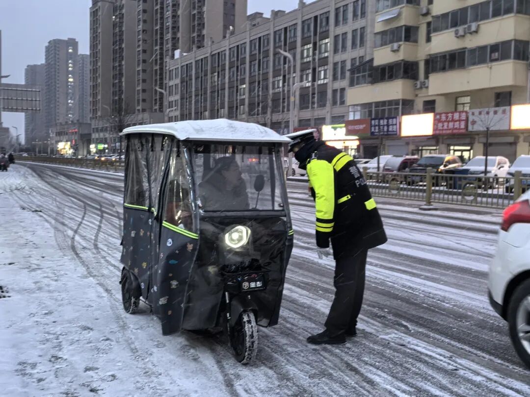 雪天与晚高峰“双向奔赴”——纷纷扬扬的雪花恰逢晚高峰时段,辖区道路交通压力骤然加剧。面对这场“不期而遇”的考验,为筑牢雪天道路交通安全防线,保障群众出行平安顺畅,牡丹区交管大队闻雪即动,以快速响应、扎实举措全力应对,最大限度缓解降雪对道路通行的影响,用坚守与担当护航每一位市民的回家路。