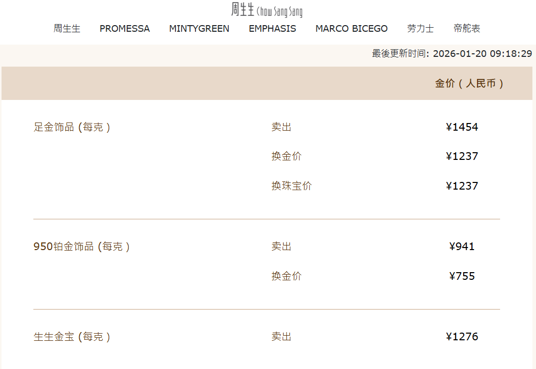 本周,国内金饰价格持续上涨,多品牌金饰克价站上1450元。中新经纬查询发现,20日,周生生报价1454元/克,两日上涨25元;老凤祥报价1456元/克;老庙黄金报价1455元/克。