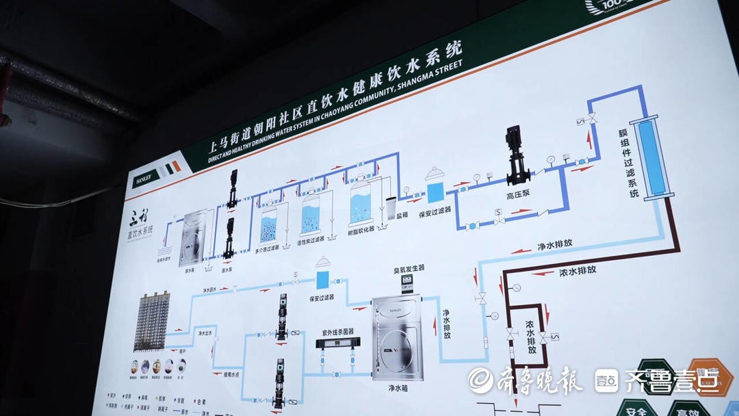 青岛三利集团营销山东分公司副总经理孙君佳介绍,这套直饮水系统采用工业级处理标准,在建设前首先对原水水质进行了全面检测,随后通过前置预处理、核心净化、控制杀菌等工艺流程,并全程采用食品级304不锈钢管道输送,确保水质在输送过程中不受二次污染。