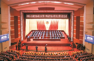 1月19日上午,中国人民政治协商会议第十四届青岛市委员会第五次会议在市人民会堂隆重开幕。 刘 栋 摄