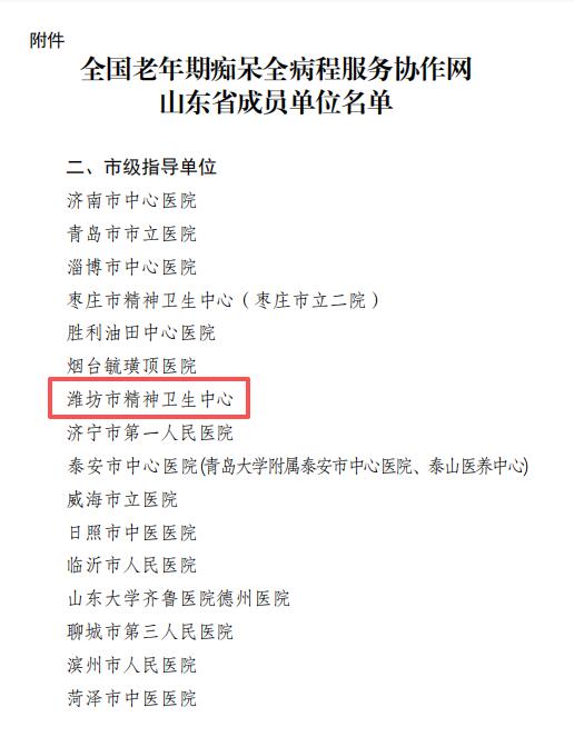 潍坊精神卫生中心入选全国老年痴呆全病程服务协作网市级指导单位