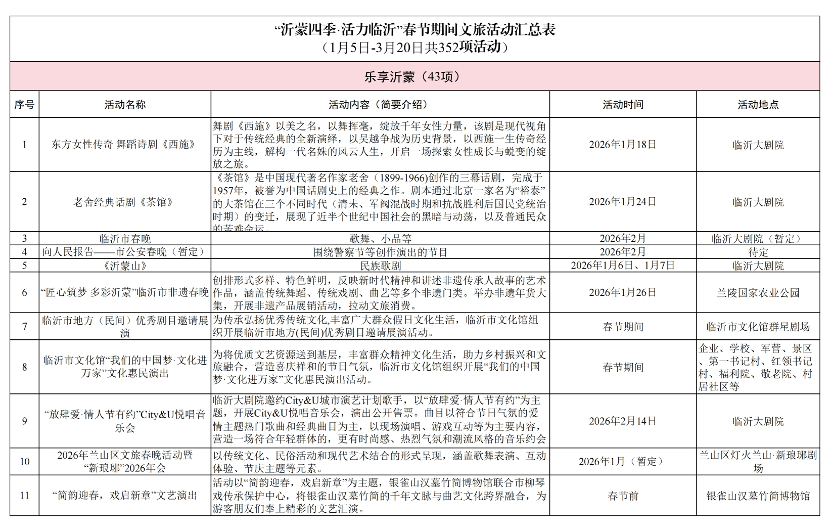 临沂2026年春节文旅长菜单:352项活动凝聚沂蒙年味
