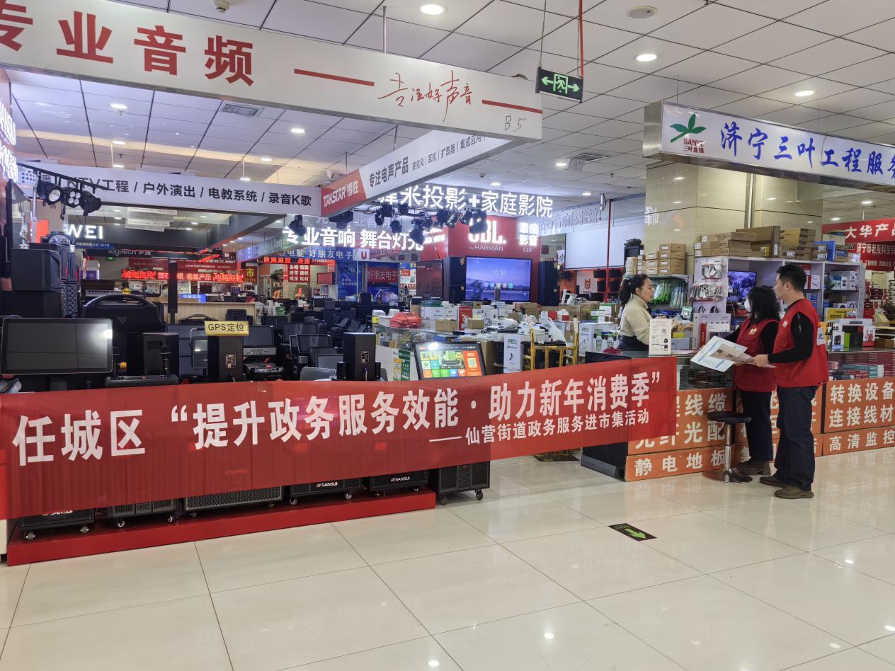 年味渐浓,消费升温。为深入推进政务服务“三进”活动落地见效,近日,济宁市任城区仙营街道紧扣“提升政务服务效能·助力新年消费季”主题,创新服务模式、延伸服务触角,将政务服务窗口从办事大厅前移至商圈闹市核心区域,一场精准高效的“送服务上门”活动正在热闹的市集间温情上演。