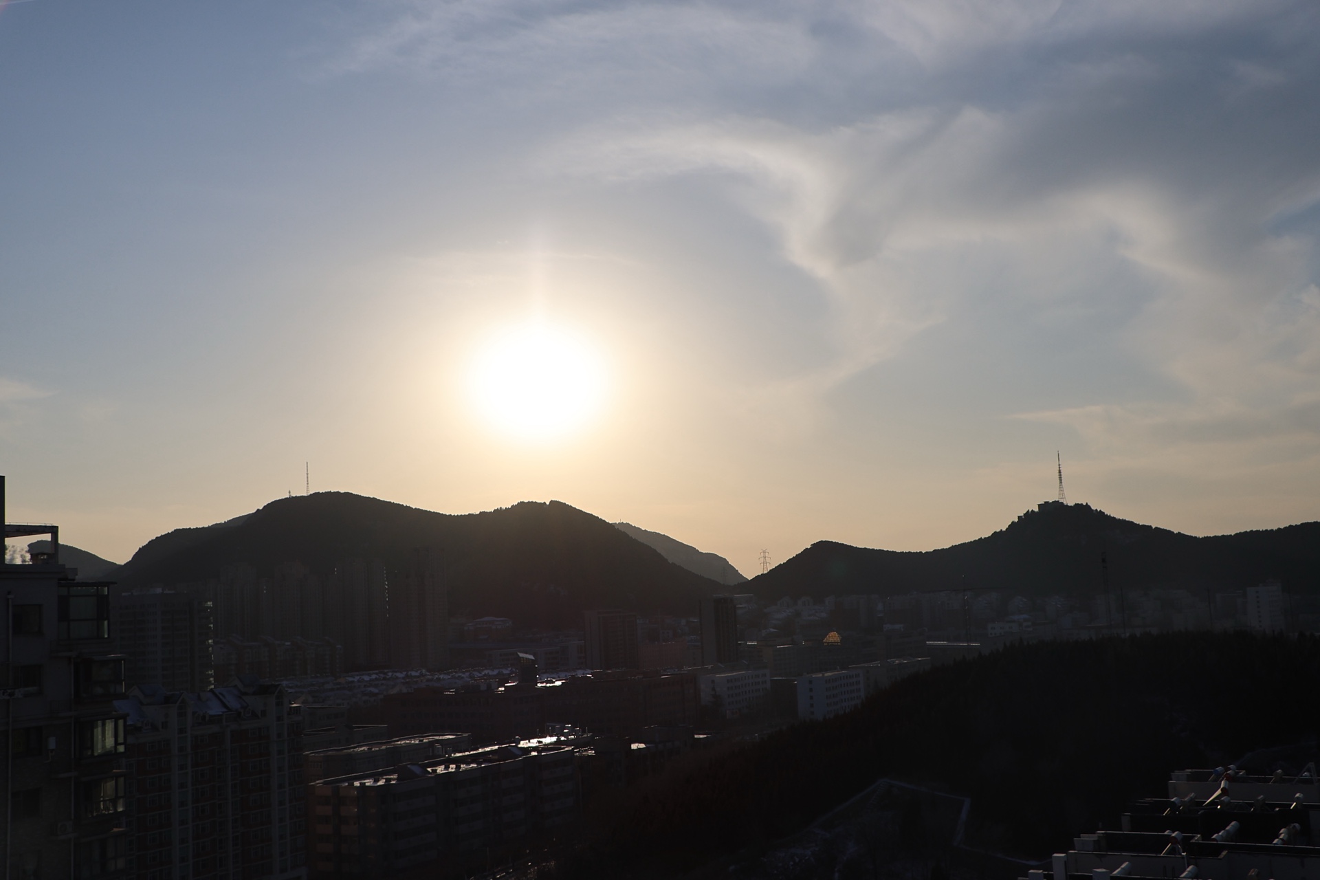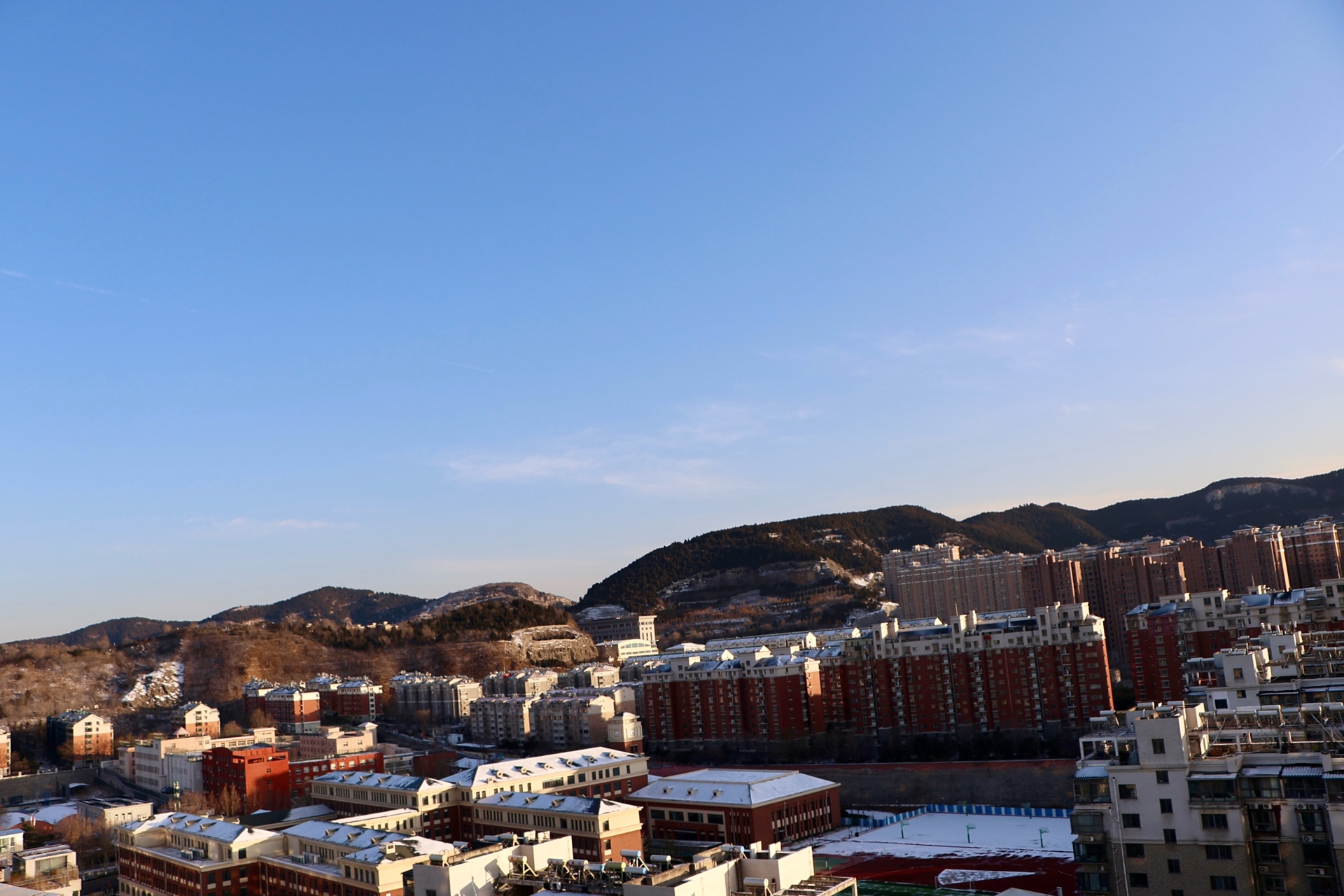 1月20日下午5时许,山东济南夕阳衔山,阳光下雪后群山连绵起伏,如诗如画。(大众新闻记者武宗义)