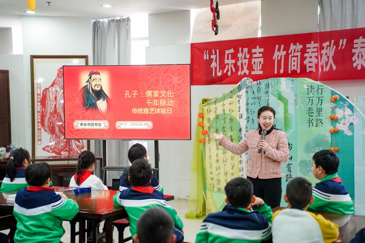 “求木之长者,必固其根本;欲流之远者,必浚其泉源。”中华优秀传统文化是民族精神命脉,儒家文化作为核心,历经千年沉淀,光芒依旧。1月16日,泰安市图书馆尼山书院举办“礼乐投壶·竹简春秋”传统雅艺体验日活动。活动以儒家文化为核心脉络,带领学生们走近至圣先师孔子,解锁古代君子的修养之道。