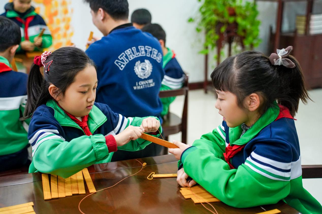 “旧书不厌百回读,熟读深思子自知。”学生们集体诵读《三字经》《弟子规》选段,感受传统蒙学启蒙教化之力。随后,在工作人员指导下,学生们亲手将写有论语的竹简按序排列好,再用针线紧密缝制起来,并且书写《论语》金句。这一过程,是对古代书写方式的体验,更是对传统文化传承的实践,学生们体会到古人治学的严谨专注。