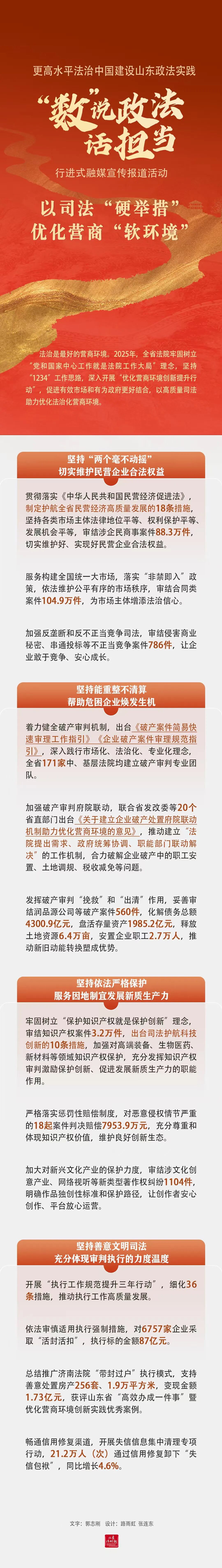 “数”说政法话担当|法院篇 以司法“硬举措”优化营商“软环境” 山东法院助力优化法治化营商环境