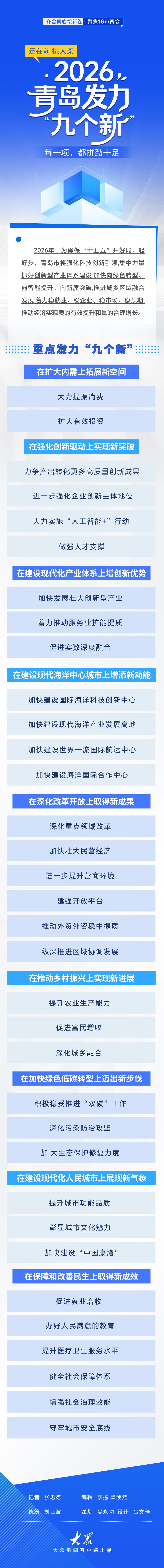 走在前 挑大梁:2026青岛发力“九个新”,每一项都拼劲十足