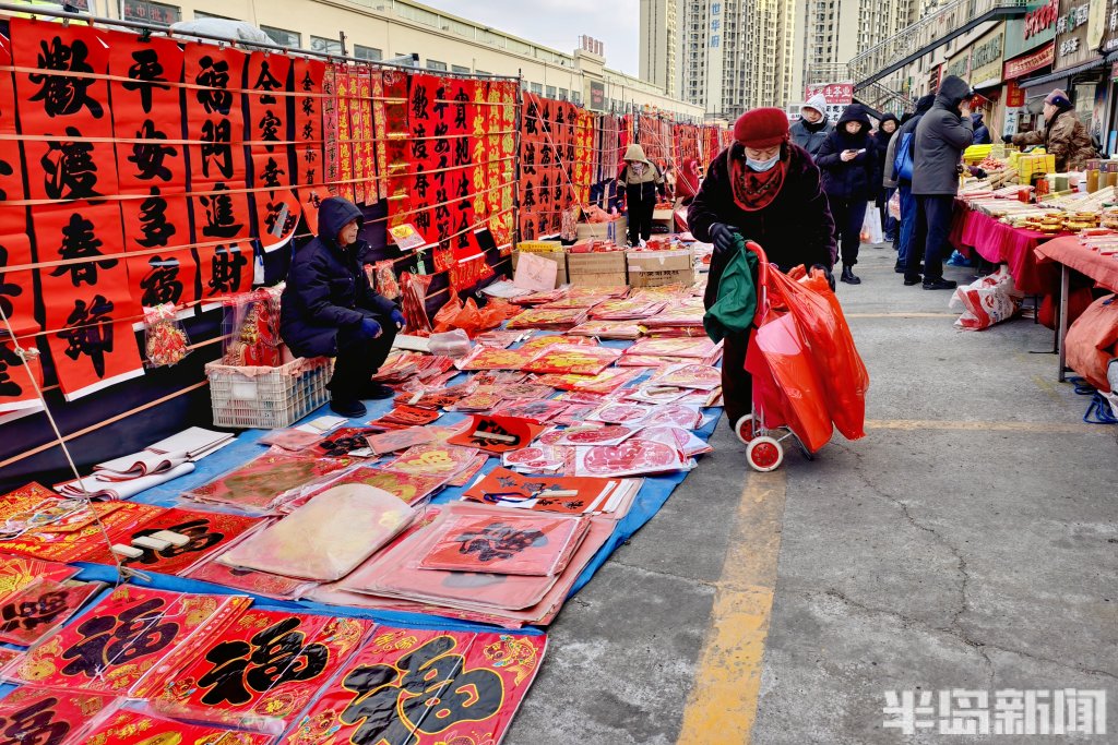 青岛李村大集腊月首开 春联红火开市引客来