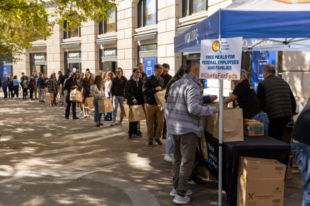 2025年11月5日,在美国首都华盛顿,联邦雇员排队领取免费食物。新华社