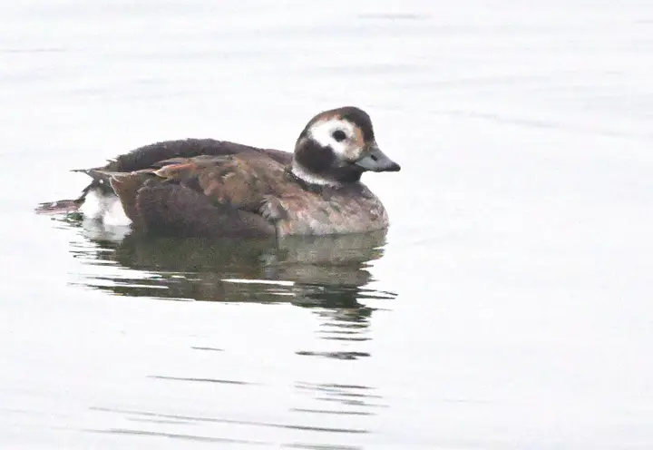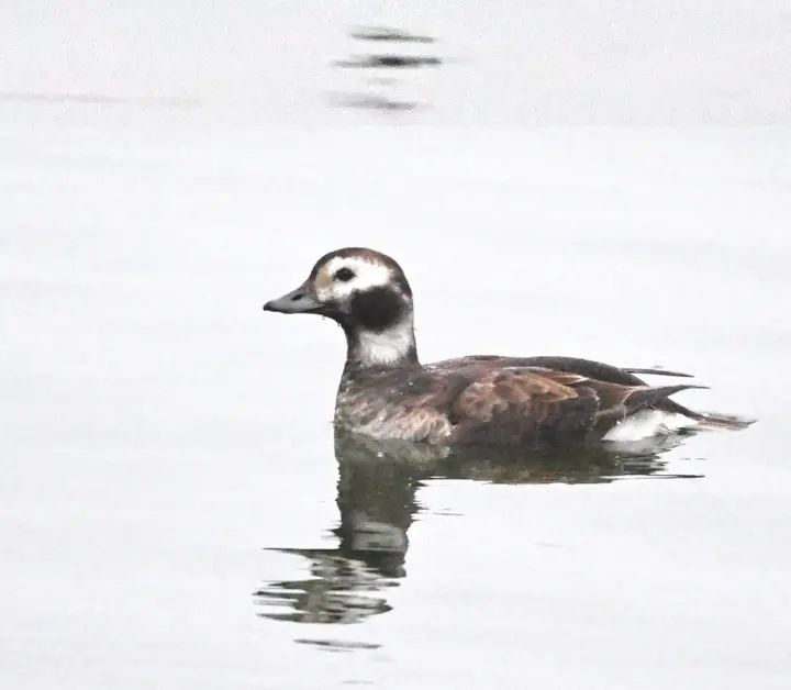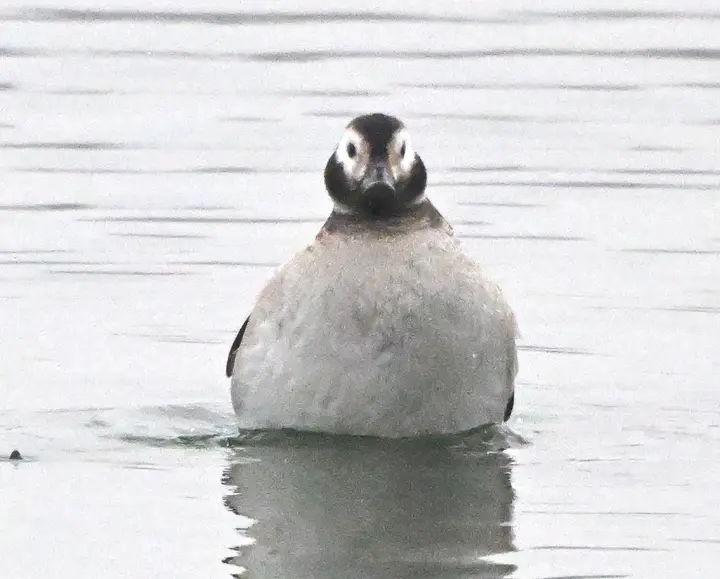 据了解,李文庆在用双筒望远镜观察鸟类时,发现了该头圆喙短脸白,体型较小,与小鸊鷉、红头潜鸭混群嬉戏、潜水的长尾鸭。长尾鸭(学名:Clangulahyemalis,英文名:Long-tailedDuck),是雁形目鸭科长尾鸭属唯一物种。雄鸟体长为51-60cm,冬羽为灰、黑、白色,中央尾羽比较长,胸部黑色,颈侧有黑斑。雌鸟体长37-47cm,冬羽呈褐色较多,头腹白色,头顶黑色,颈侧也有黑斑(以上介绍参考《中国鸟类野外手册》)。从李文庆拍的照片和视频中可以看出,本次光临天平湖的长尾鸭为冬羽状态的雌鸟。