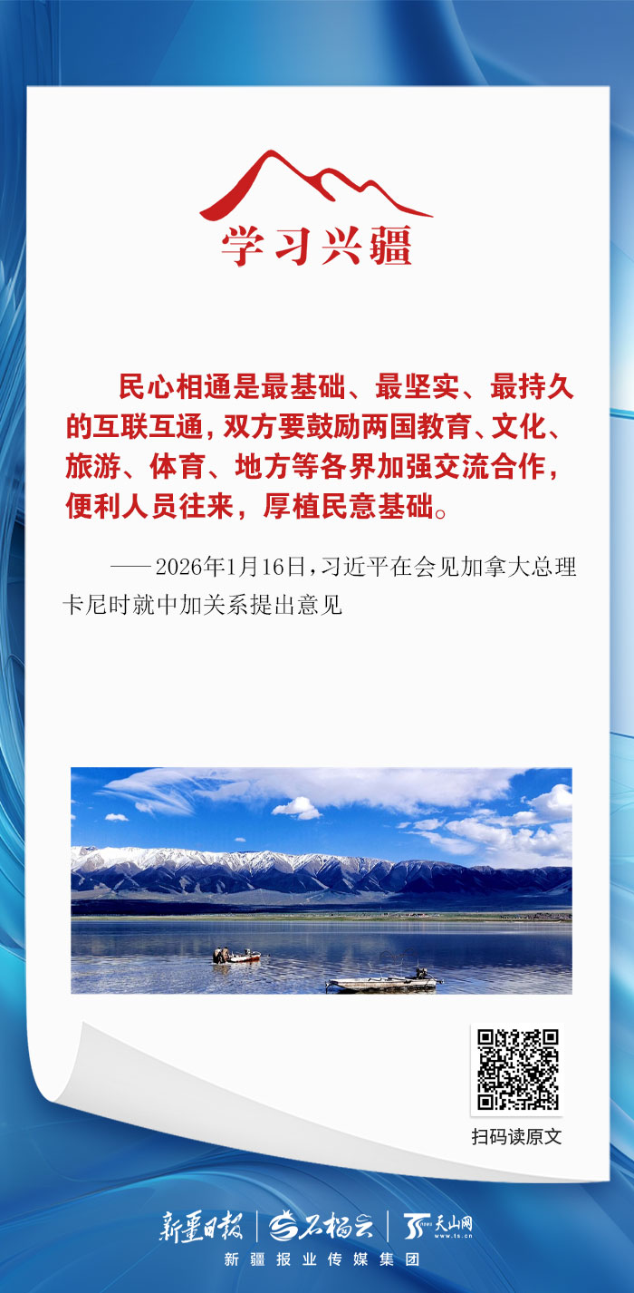 民心相通是最基础、最坚实、最持久的互联互通,双方要鼓励两国教育、文化、旅游、体育、地方等各界加强交流合作,便利人员往来,厚植民意基础。——2026年1月16日,习近平在会见加拿大总理卡尼时就中加关系提出意见