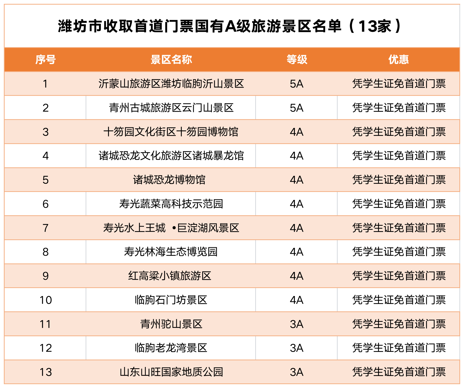 @潍坊大中专学生,全市国有景区门票全免