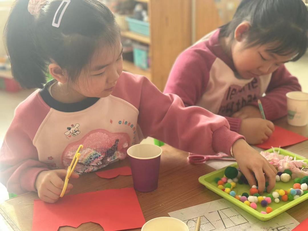 制作环节里,孩子们化身“小小艺术家”,在老师的指导下,将提前准备好的彩纸、亮片、小树枝、花瓣等材料,小心翼翼地放进透明容器中,再倒入清水。大家一边摆放材料,一边叽叽喳喳地讨论着:“我要做一个彩虹冰花!”“我的冰花里有小树叶,肯定很漂亮!”每一个容器里,都盛满了孩子们的奇思妙想。