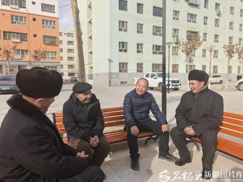 1月16日,阿克陶县阿克陶镇幸福路社区党委书记马福龙在凯城小区与群众唠家常、听民意。 王潮摄
