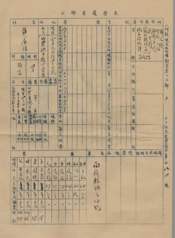 黄居祥履历表清楚注明籍贯为“山东德平县丁家庄”
