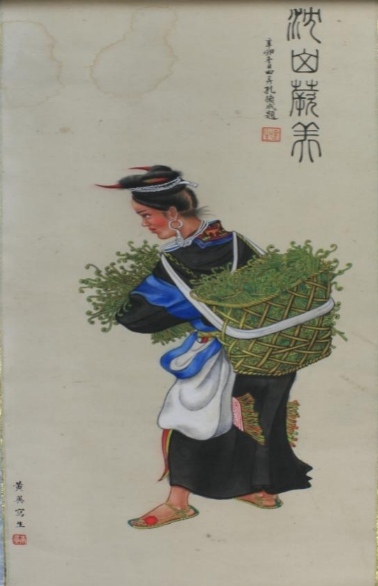 在安顺期间,黄居祥创作了大量反映西南少数民族生活的写生画。他的画风细腻写实,笔触精准,不仅描绘了人物的外貌,更捕捉到了他们神态中的坚韧与淳朴。著名国画大师张大千在看到他的作品后,欣然题词“西南之美”,对其艺术成就给予了极高评价。