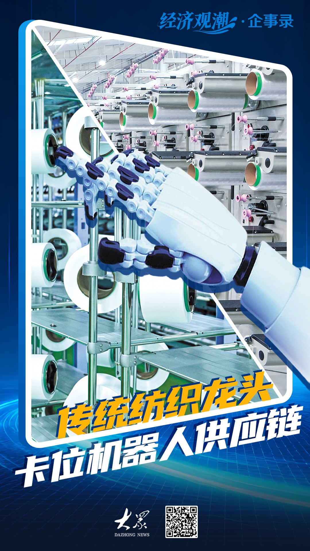 从时尚秀场的精纺呢绒,到深海工程的特种缆绳,再到人形机器人的触觉感知系统,这家山东传统纺织企业,用两根丝完成了“传统纺织—高端新材料—机器人核心部件”的转型升级。这不仅是产品跨界,更是一家中国制造企业在时代浪潮中,主动向产业链顶端持续攀登的进化样本。