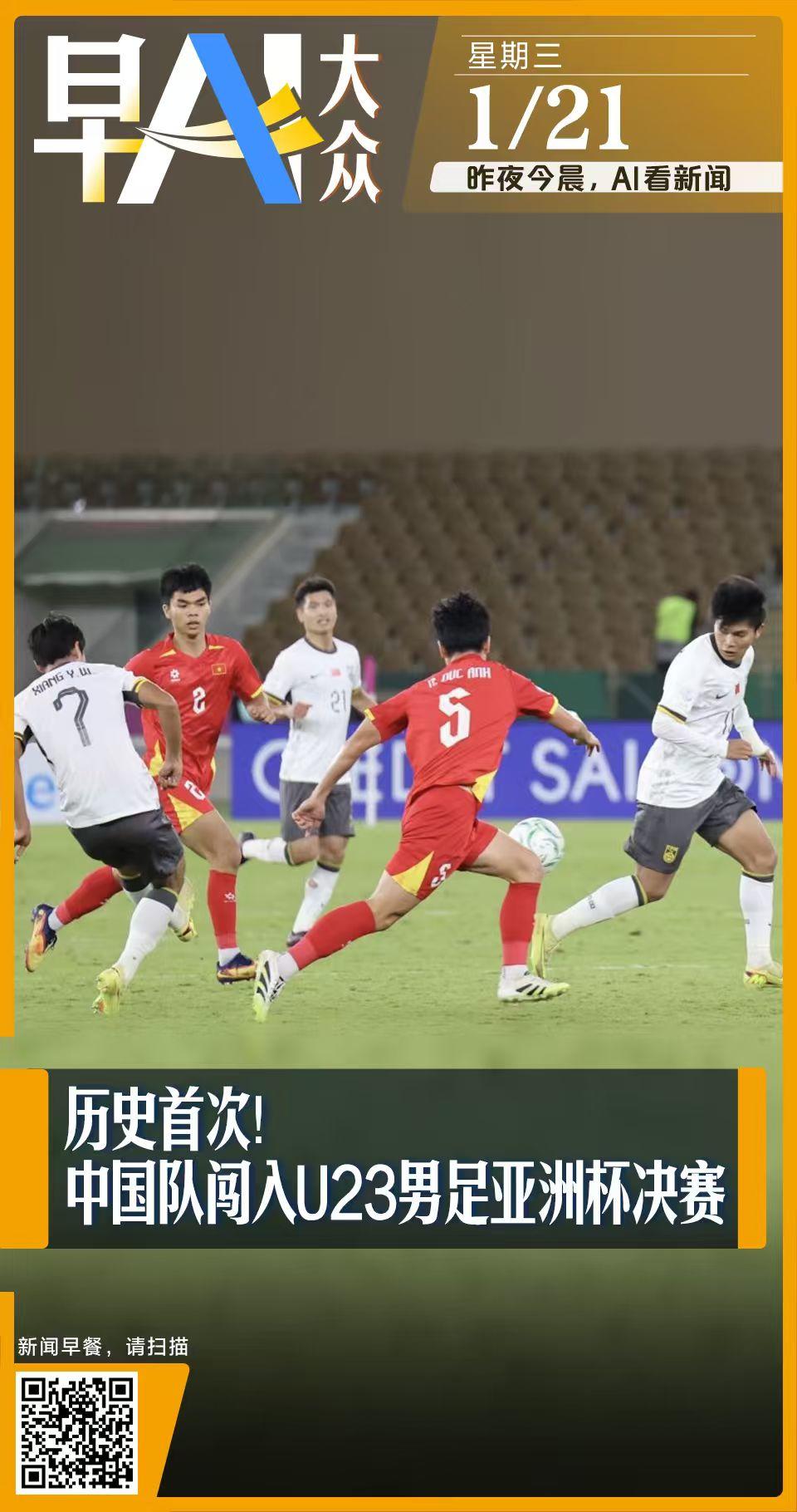 早AI大众|中国U23男足首次晋级亚洲杯决赛;国际金价银价再创新高
