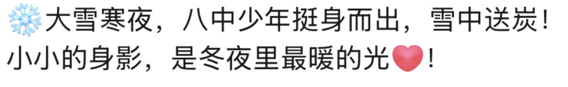 记者看到,枣庄八中官方账号也发布了这段视频,“学子雪夜暖心助推救护车,风雪无阻显担当!为善良点赞!