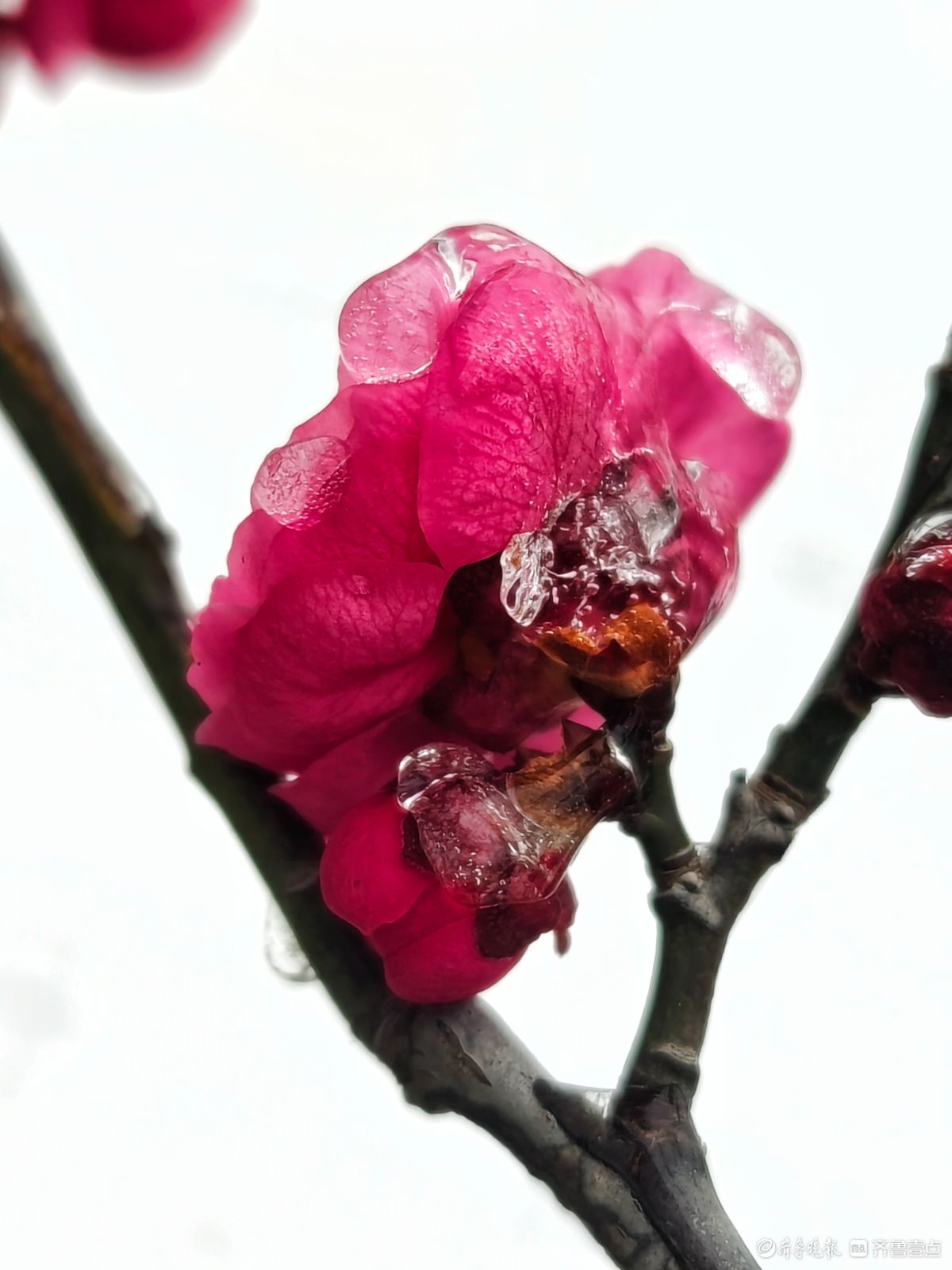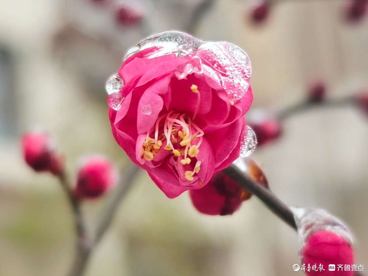 太惊艳!雨雪裹红梅摄影 | 2026-01-21 08:36:48 微信扫码扫码下载客户端1月19日,大寒节气至,临沂沂河新区迎来一场冻雨雪,红梅枝头刚刚绽放的红梅花儿,被一层层冰雨和雪花紧紧裹住,晶莹剔透的景致格外迷人。 高军 摄责任编辑:王媛
