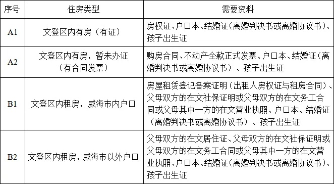 “A1文登区内有房(有证)”:学生本人或学生父母名下在文登有房、有房权证,需用其名下房产报名转学。