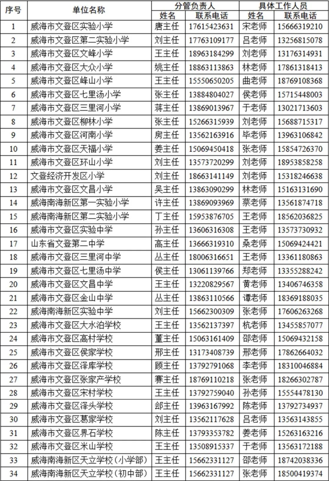 未尽事宜或不明之处,可拨打各学校、文登区教体局电话咨询。咨询电话如下。