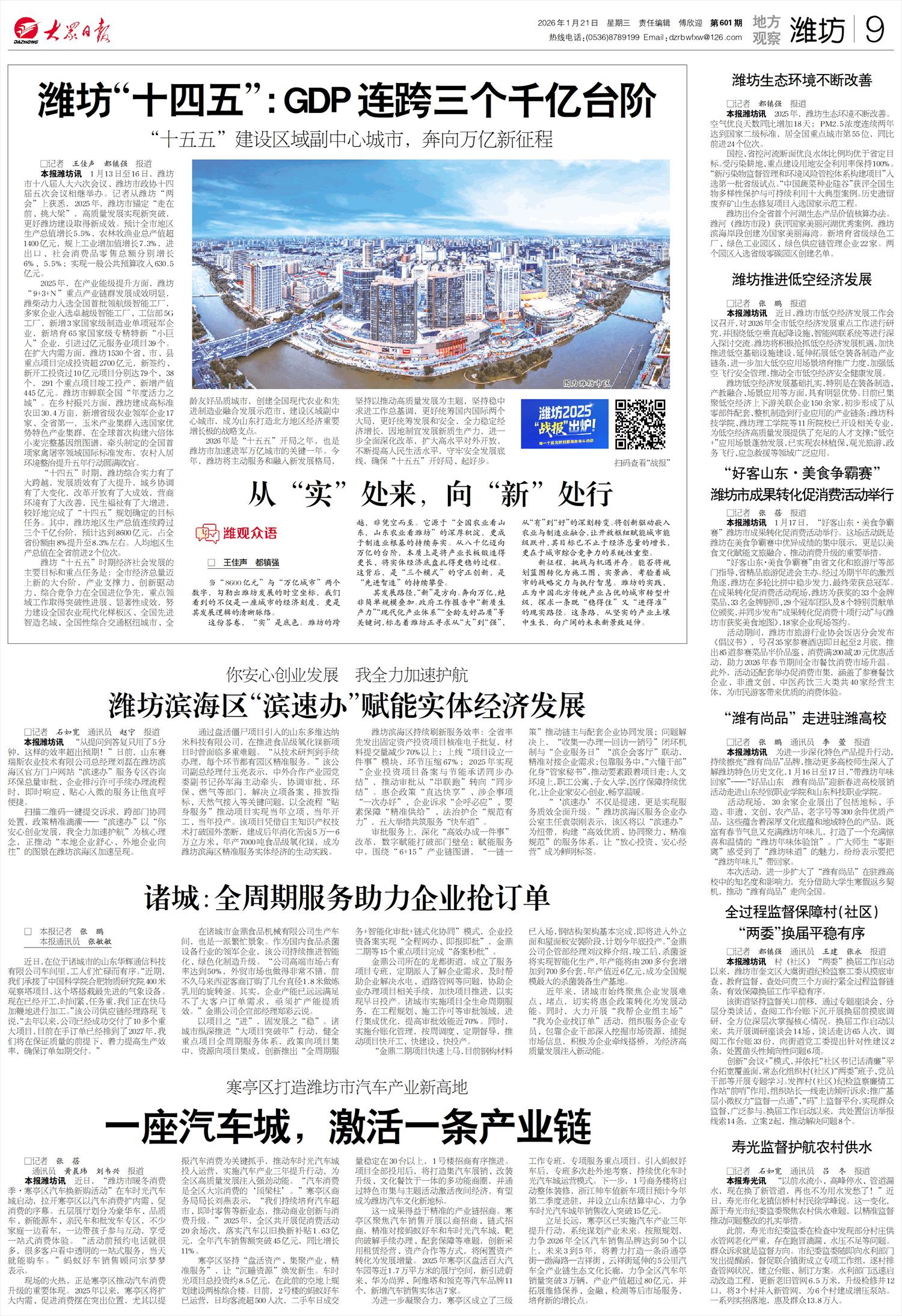 新征程,挑战与机遇并存。能否将规划蓝图转化为施工图、实景画,考验着城市的战略定力与执行智慧。潍坊的实践,正为中国北方传统产业占优的城市转型升级,探求一条既“稳得住”又“进得准”的现实路径。这条路,从坚实的产业土壤中生长,向广阔的未来新景致延伸。
