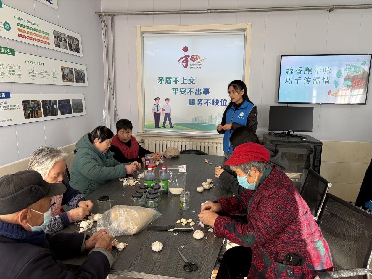 活动开始,网格员们早已将准备好的紫皮蒜、玻璃罐、米醋、白糖等材料整齐摆放。网格员小秦边示范边讲解:“泡腊八蒜最重要的是密封和温度,咱们北方有暖气,放在阴凉处正好。”居民们围坐在一起,边剥蒜边拉家常,气氛温馨融洽。